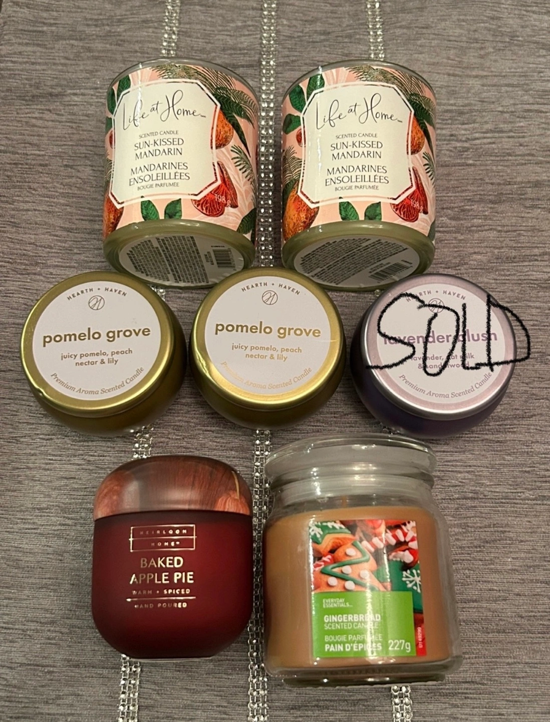 One-wick candles, various scents and brands. All brand new, regular prices vary from $10-$15, selling each one for $5