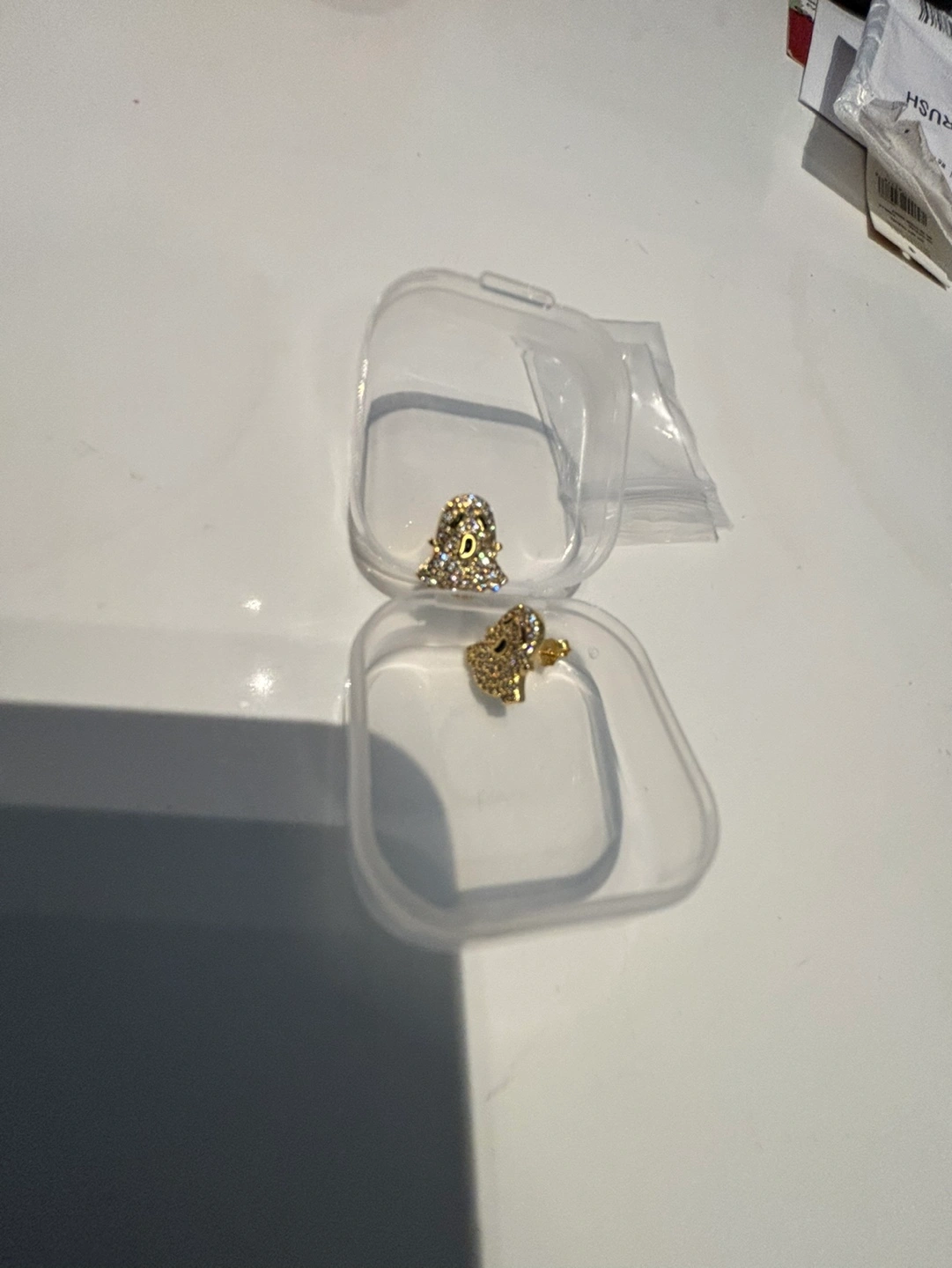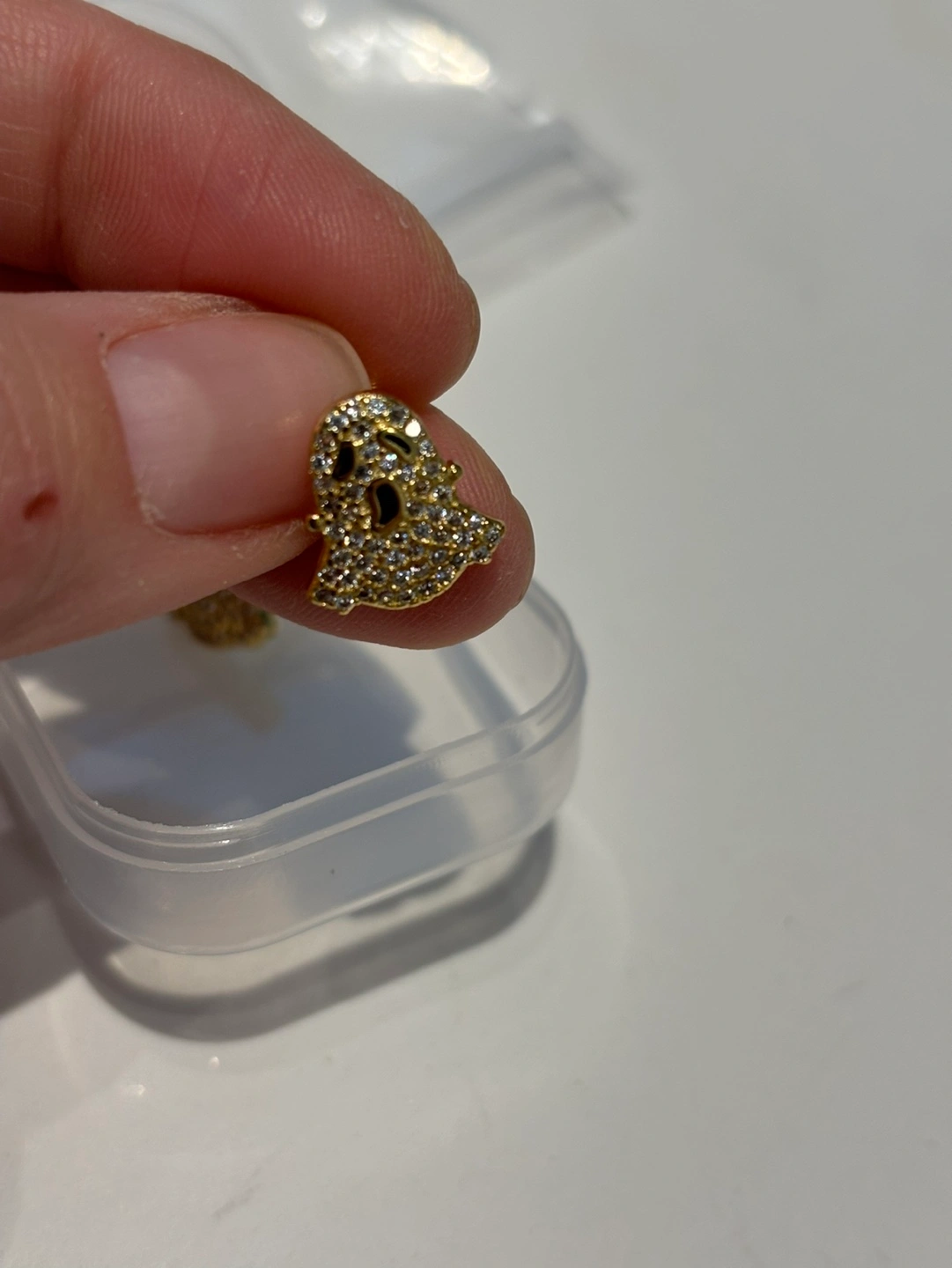 Gold ghost shaped stud earrings with clear stones. 18k gold plated. Small, delicate, and cute. Never been worn or tried on.