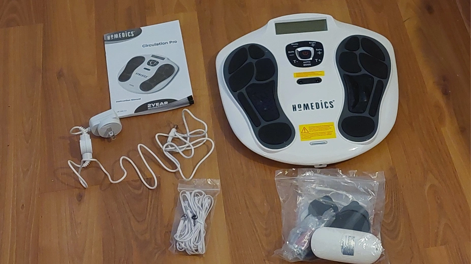 Foot massager with remote control. Includes pads, Mannual and power cord.