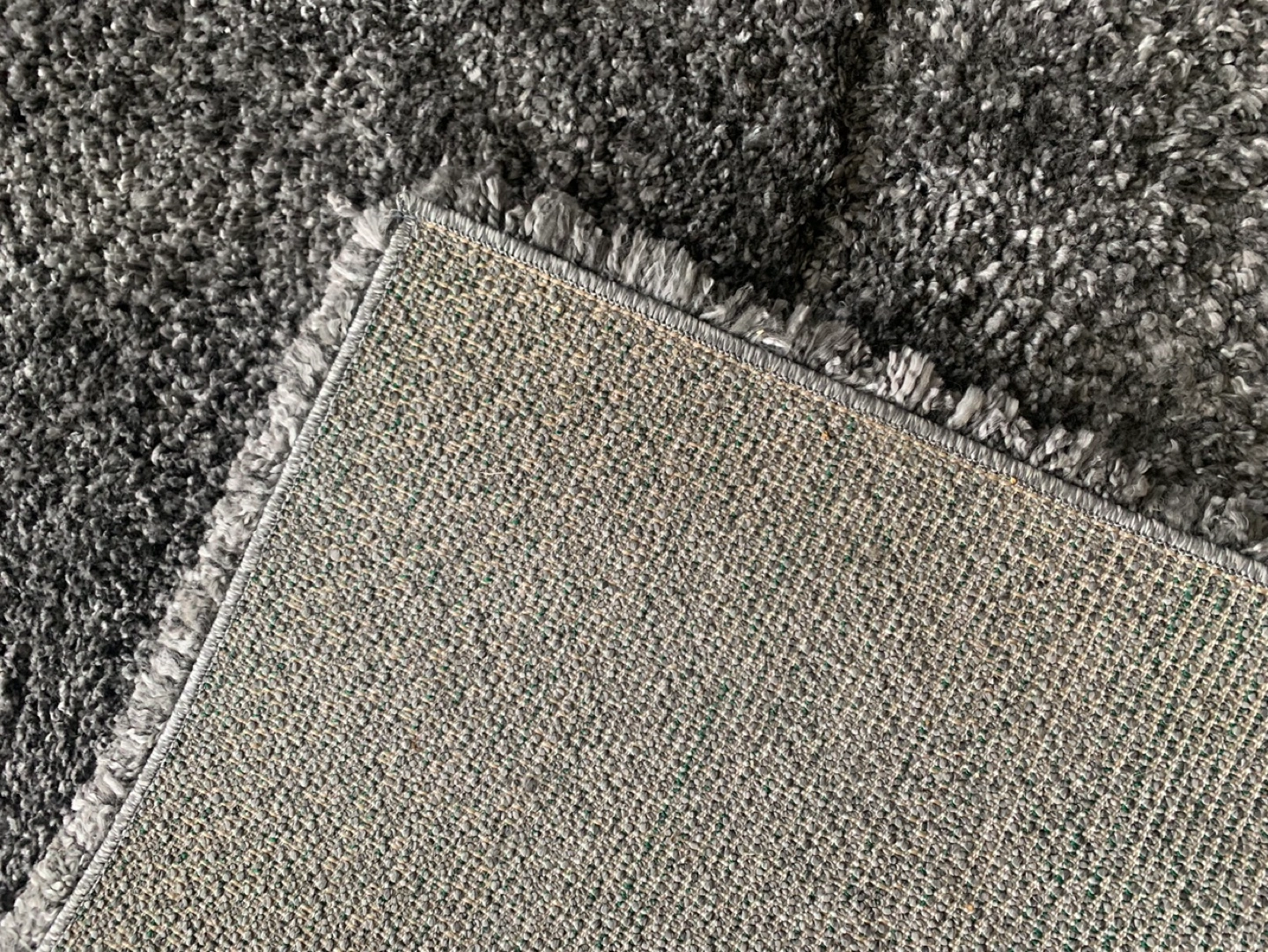 Super soft touch area rug Grey shag rug with a non-slip backing. Measures approximately 90 x 60 inches. Like new Non smoking & no pets household