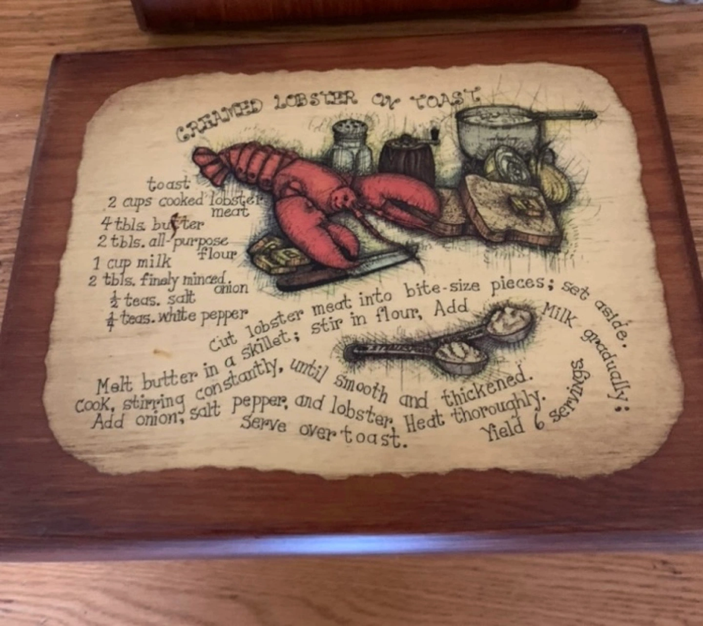 Kitchen Decor for hanging - recipe mounted on wooden plaque It has a metal hook on the back for hanging. -excellent condition Moving sale - smoke free & pet free household