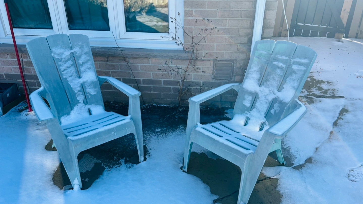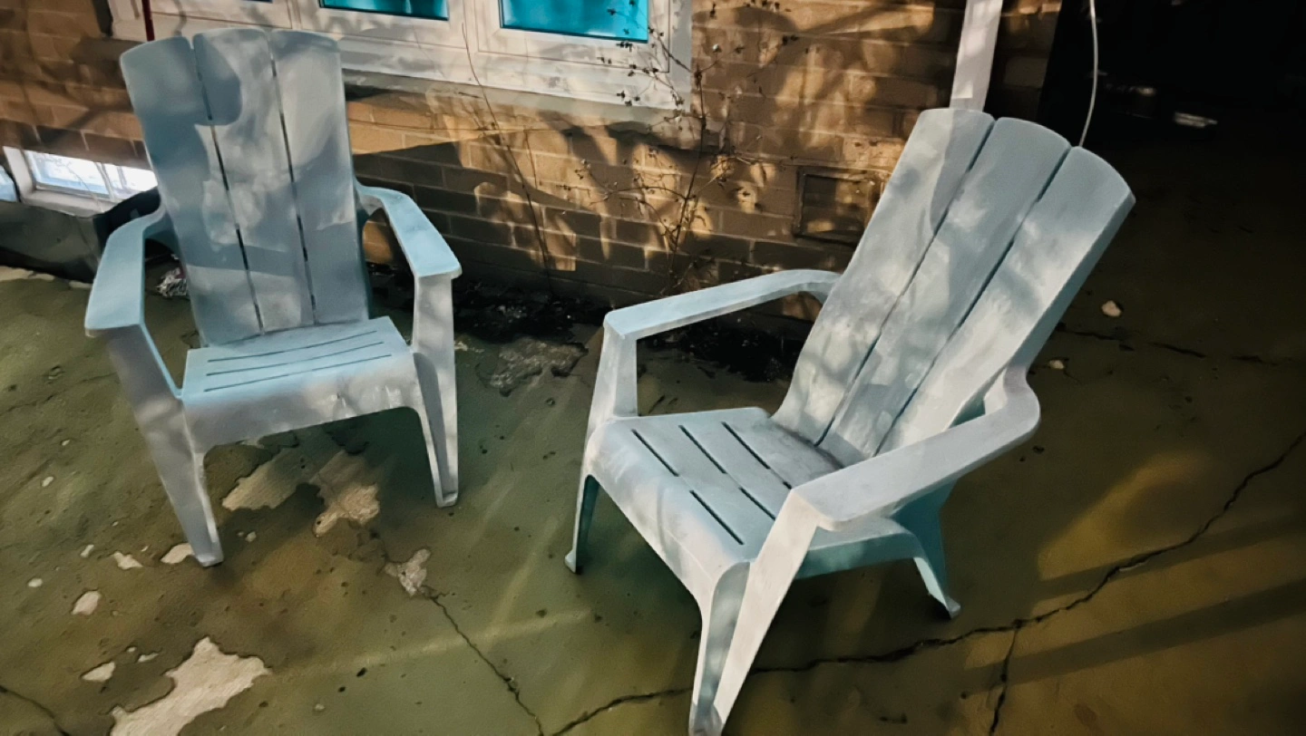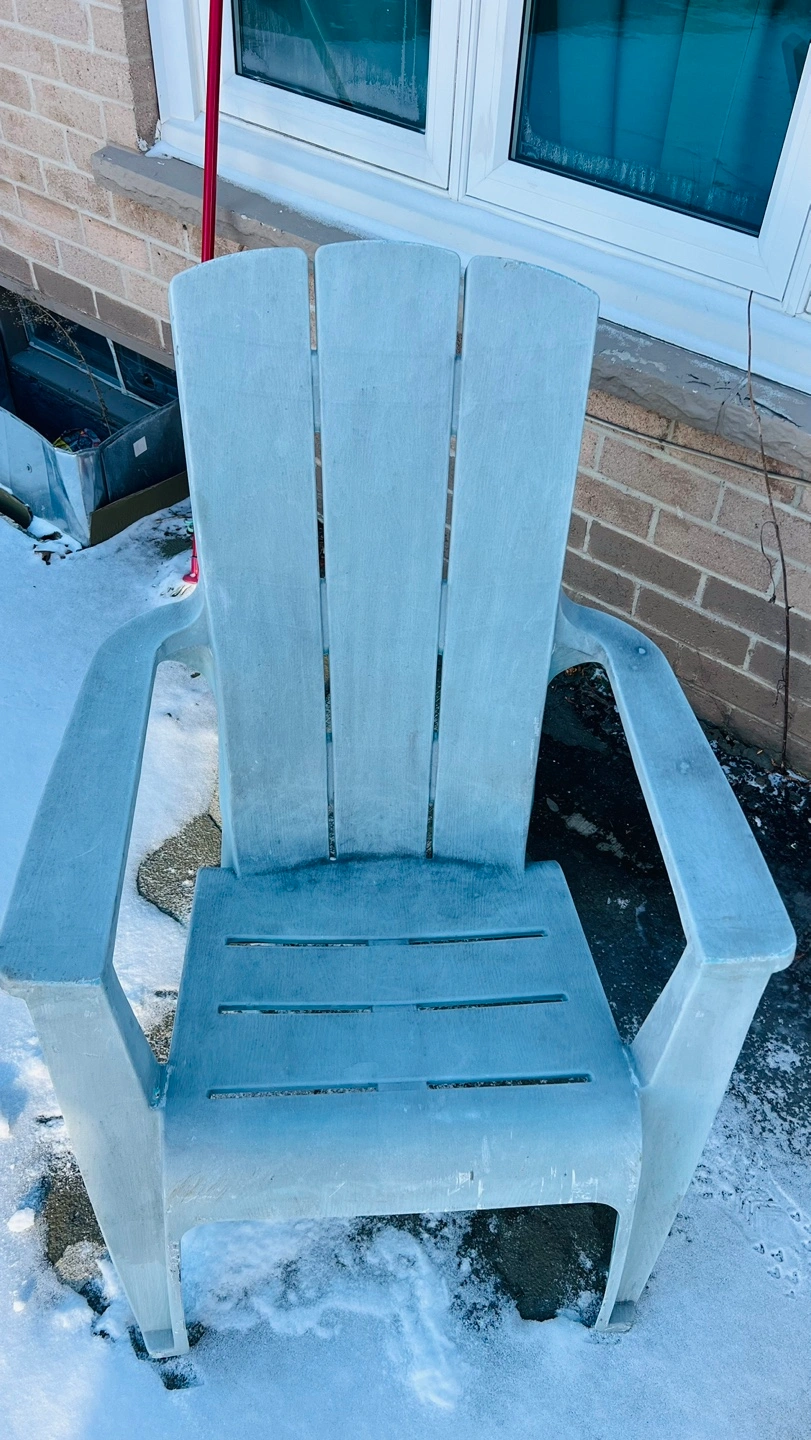 Two grey plastic chairs. Perfect for your patio or backyard. Both for $10. Offer for New Year.