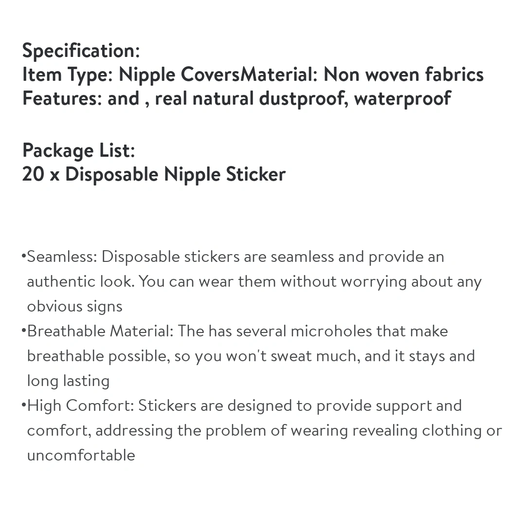 Disposable nipple covers in both round and flower shapes. Seamless, breathable, and comfortable. Non-woven fabric. Dustproof and waterproof. cash only smoke free and pet free home