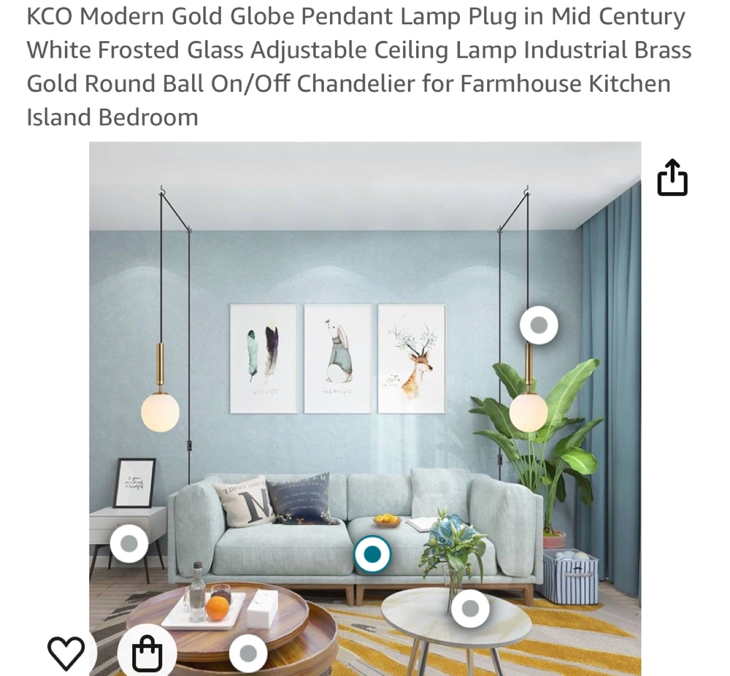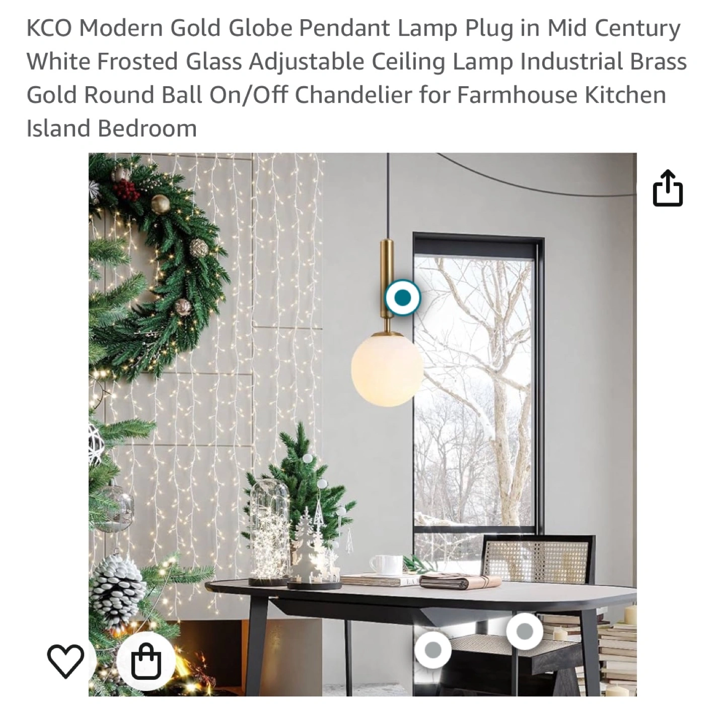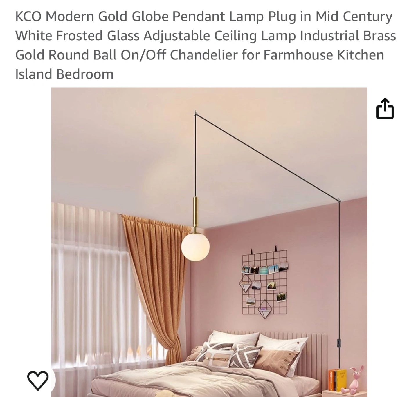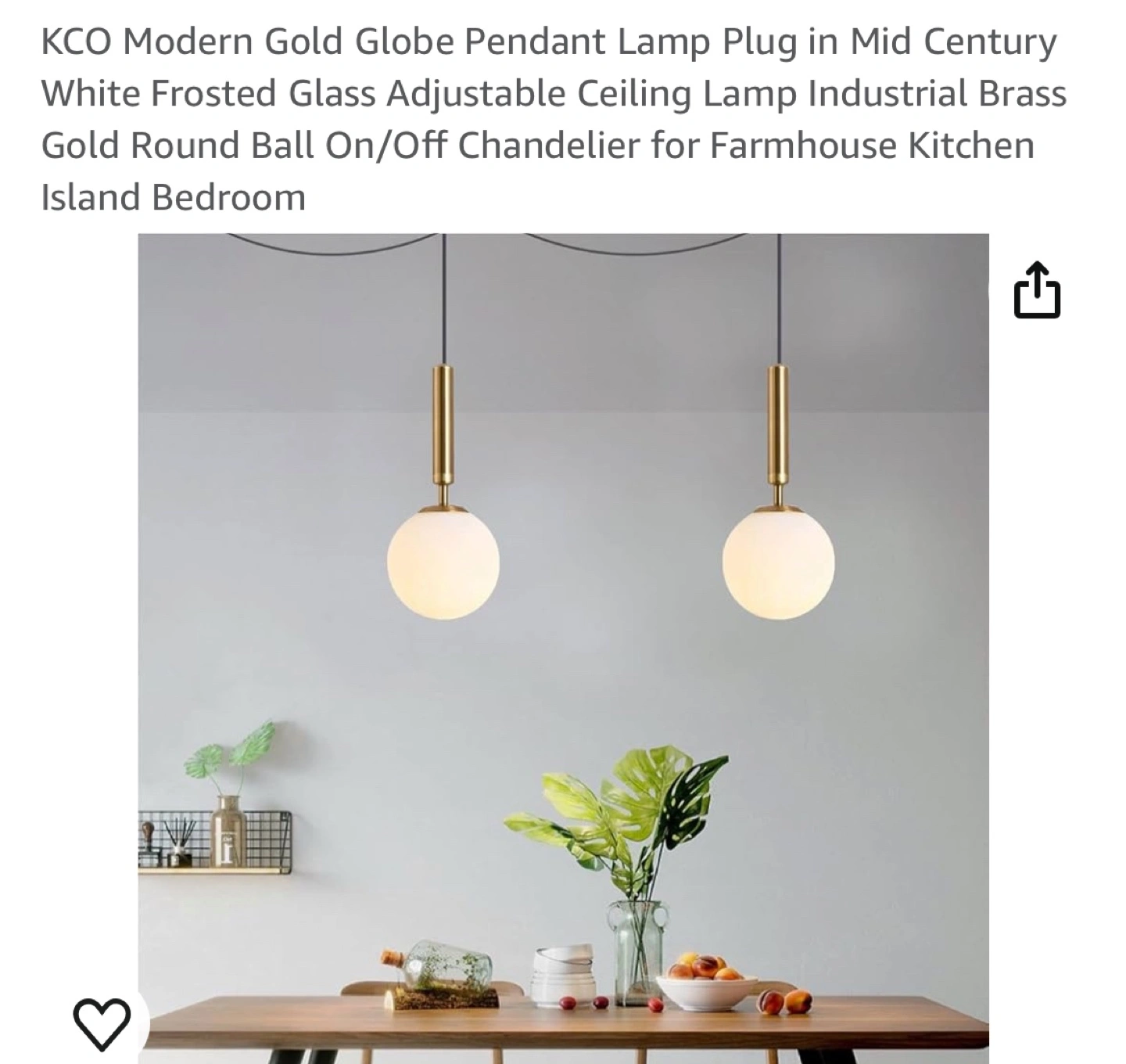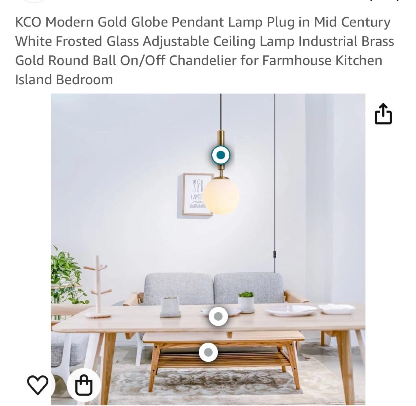 Frosted glass globe pendant lamp. Gold finish. Adjustable length cord with on/off switch.