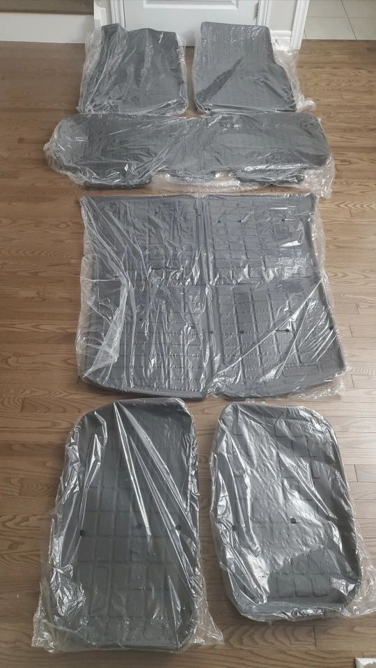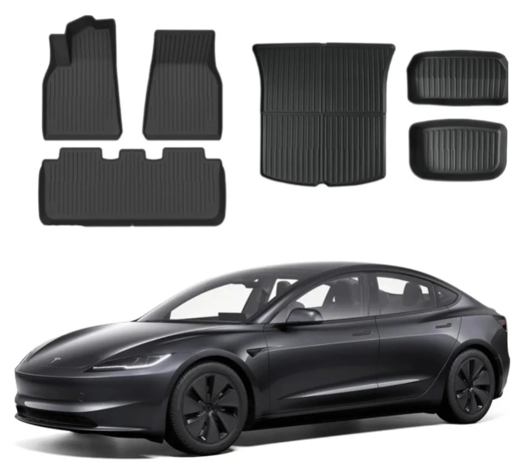 BNIB Brand New In Box Full Set (6 Piece) Custom All Weather Mats Includes: Driver and Passenger Side, Second Row, Front Trunk, Rear Trunk and Rear Well Mats Fits Tesla Model 3 Scratch Resistant Surface Laser cut to provide a perfect edge-to-edge fit for the exact floor plan and footwell areas of your vehicle 3 Layer Design: TPR surface layer is waterproof, the middle XPE foam reduces noise and enhance foot comfort, the anti-skid backing provides precise positioning Environmentally Friendly Material Odorless, Durable and Easy to Clean ***Please Check Out My Other Ads