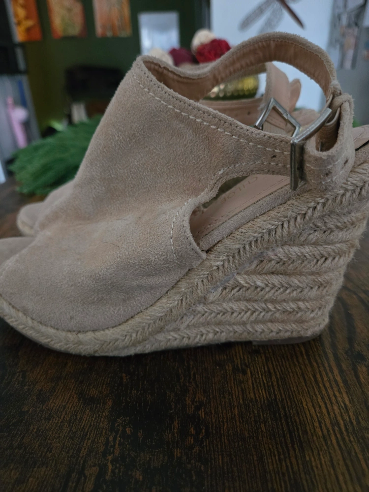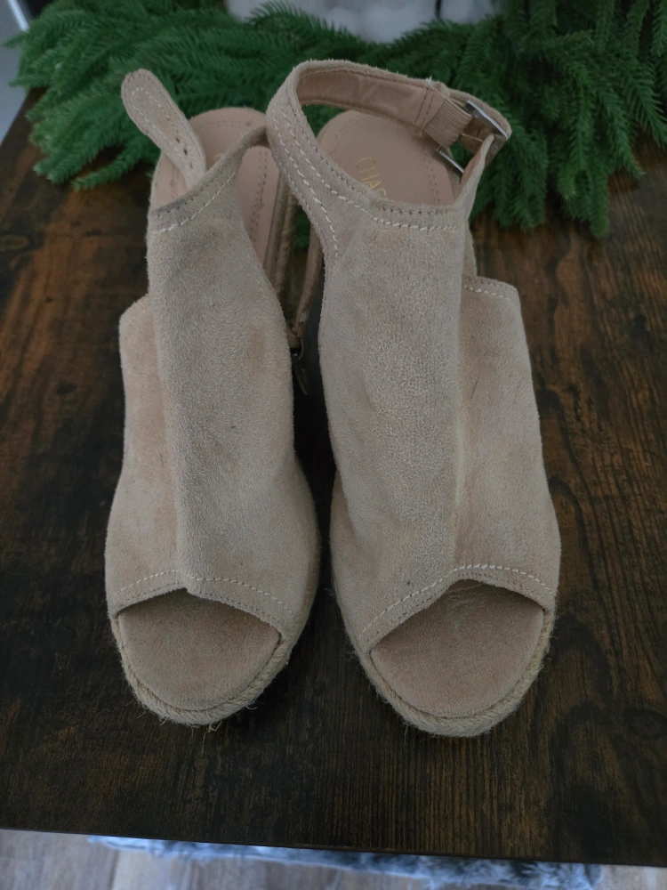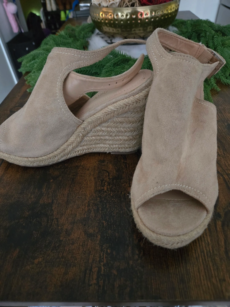 Tan suede wedges. Open toe and ankle strap. Size 8 1/2. These were my mom's. whom has since passed. Fixed price