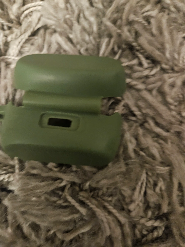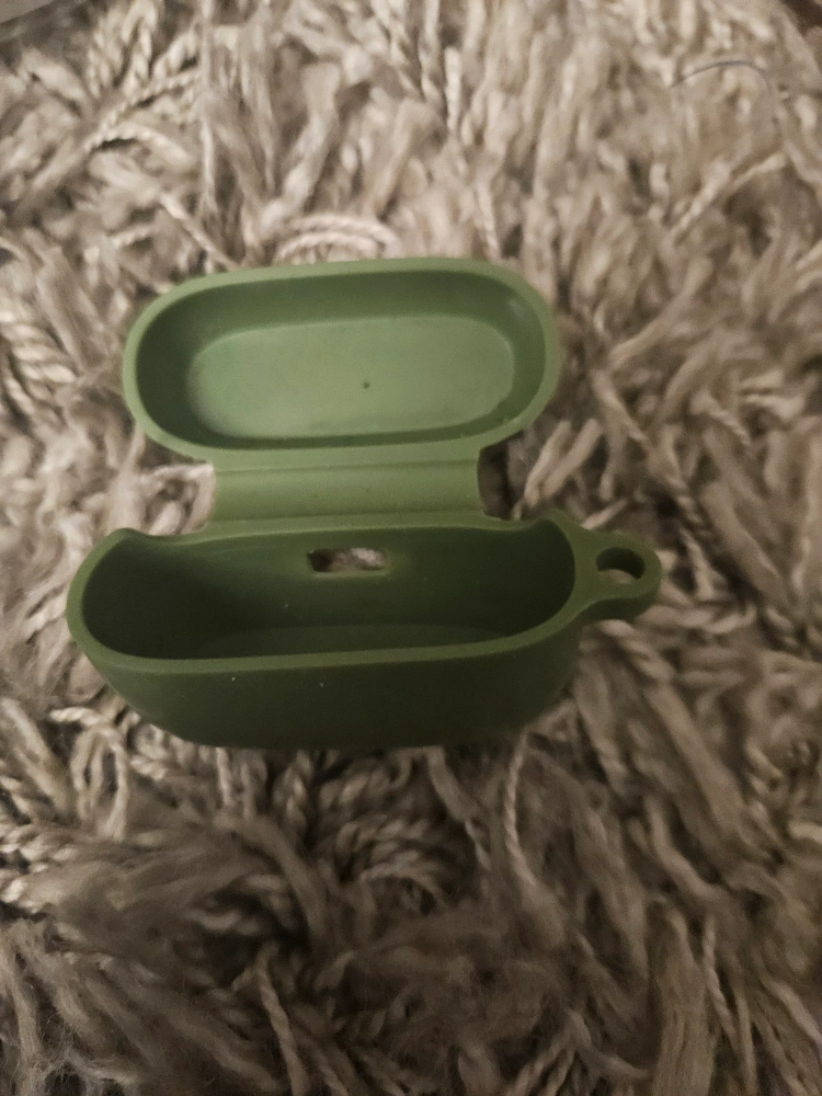 Silicone case for Jabra elite 75t. Green colour. Has a small hole for a charging cable.