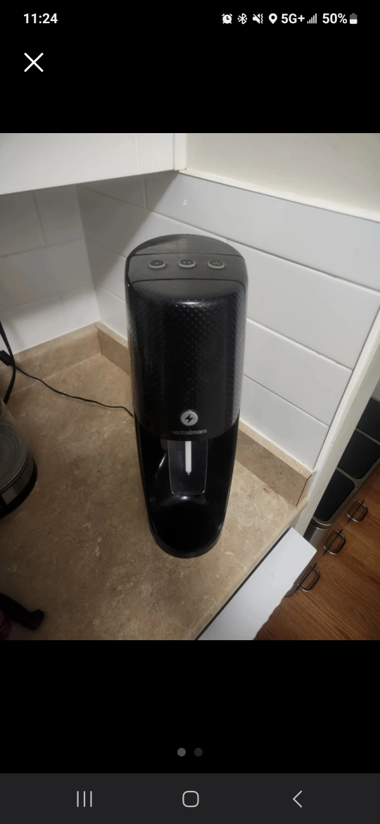 Black SodaStream sparkling water maker. SodaStream Fizzi One Touch Sparkling Water Maker. Snap-Lock Technology That Instantly Clips, Black Comes with: 2 x small BPA Free Bottles 1x large BPA Free Bottle Plug in cord