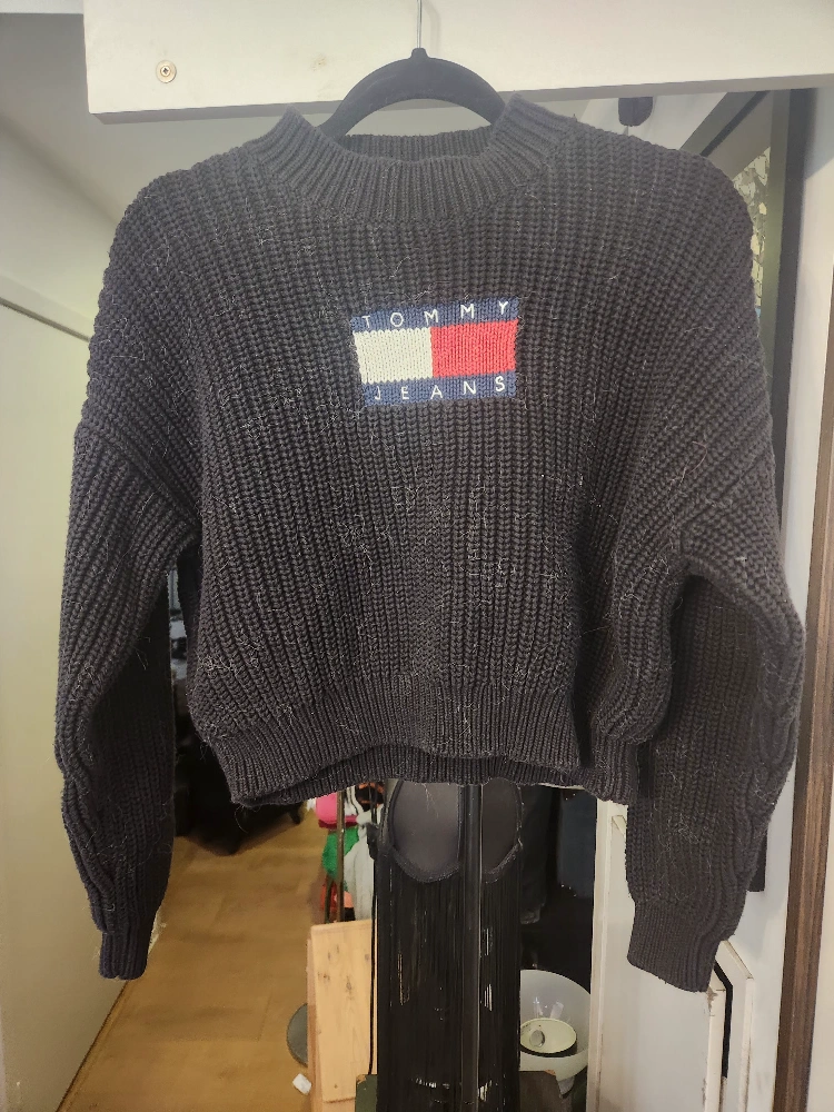 Black TOMMY JEANS women's cropped sweater with logo on chest. - Sweater - elasticated cuffs - logo on chest Photographed size XS. Model is 177 cm. Materials Composition 50% Polyester: a very strong synthetic fiber that boasts high heat resistance and excellent odor absorption 50% Acrylic: A fabric that is soft, doesn’t crease, dries quickly, but mainly, it is not enjoyable for moths. Details Colour: Black Season: Winter, Autumn Brand: Tommy Hilfiger * Cash Only * * No E-transfers * * Pickup Only * * Serious Offers Only * * No Holds or Reserves *