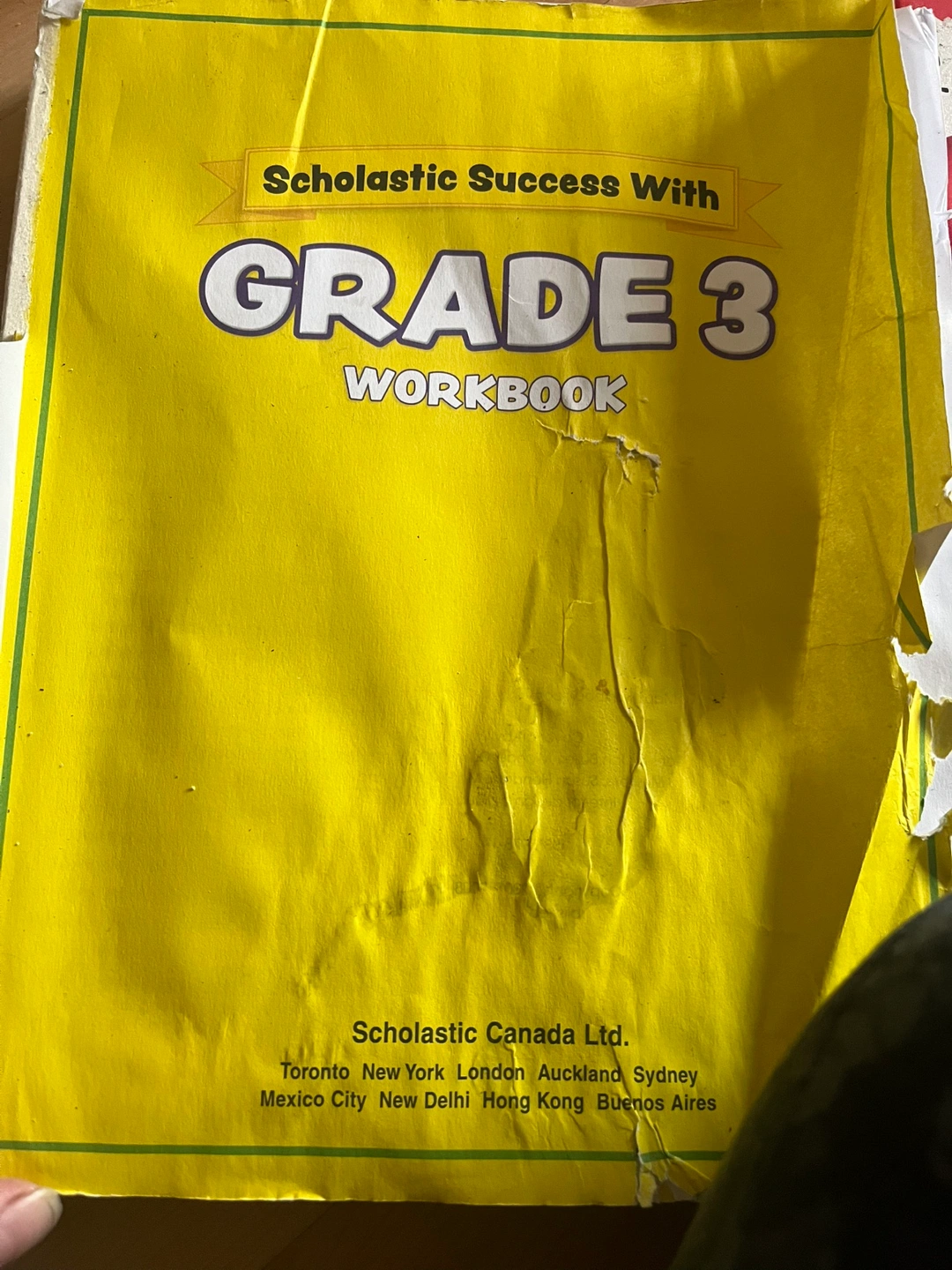 Set of 5 Grade 3 workbooks. Includes Grammar, Writing, Contemporary Cursive, and Reading Comprehension. Cover page is a ripped but the rest of the book is in a very good condition. Pet free, smoke free home