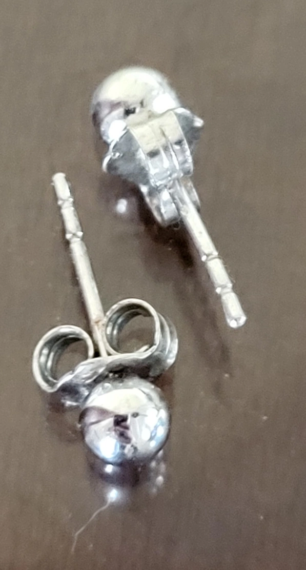 Small silver ball stud earrings. Butterfly back closure.