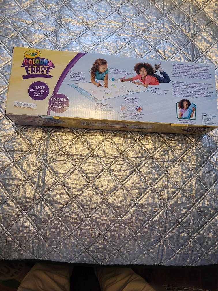 Brand New Crayola Color & Erase mat provides huge 2' x 3' reusable drawing surface! The huge drawing surface means there is plenty of room for one or more little artists to get creative together! The included ColorPop! washable markers easily wipe clean from the Colour & Erase Mat surface with the use of the refillable eraser tool and wipe cloth. Included : 4 Washable Markers; 1 Wipe Cloth; 1 Refillable Eraser Price $18 cash per mat.