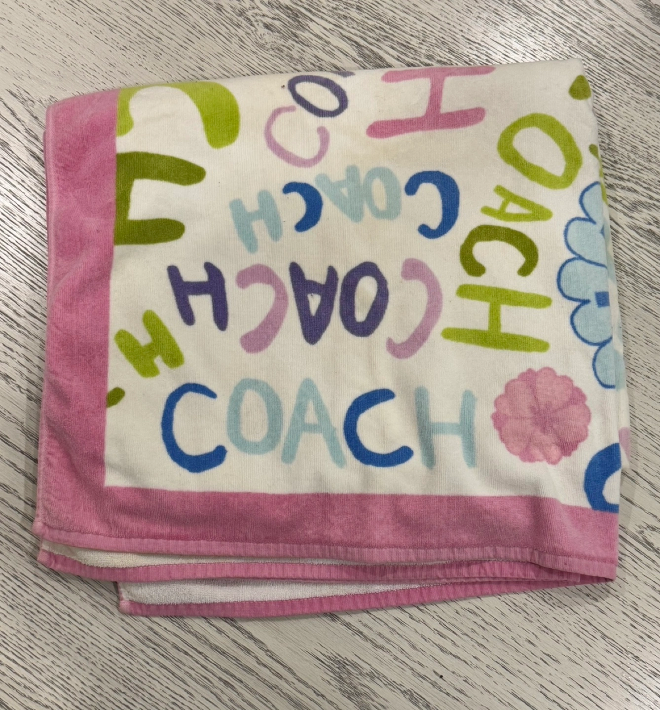 Fun, colourful coach beach towel! In good overall condition, just has a minor stain (last picture) which can easily be removed by washing. Nice thick cotton terry material. Approximately 70" x 40". Price is firm, cash only please. Pickup at Yonge&Eglinton/Eglinton station or we can arrange to meet elsewhere in the area or along TTC line 1/downtown Toronto as well.
