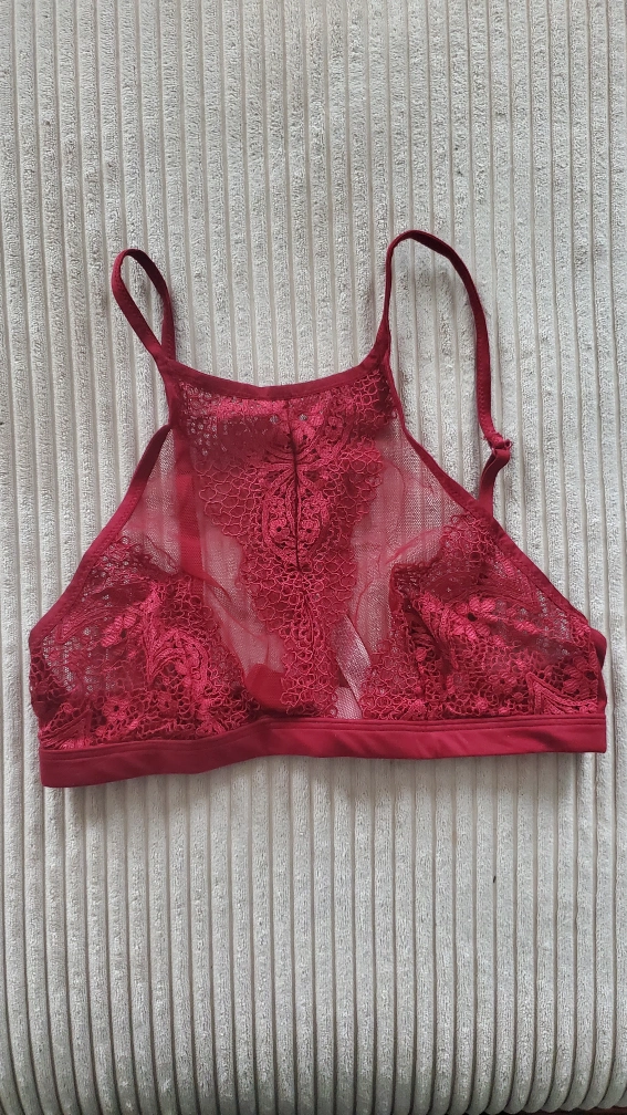 Red lace bralette. Size S/P. Adjustable straps. Halter style. NEW, NO TAGS - NEVER WORN.