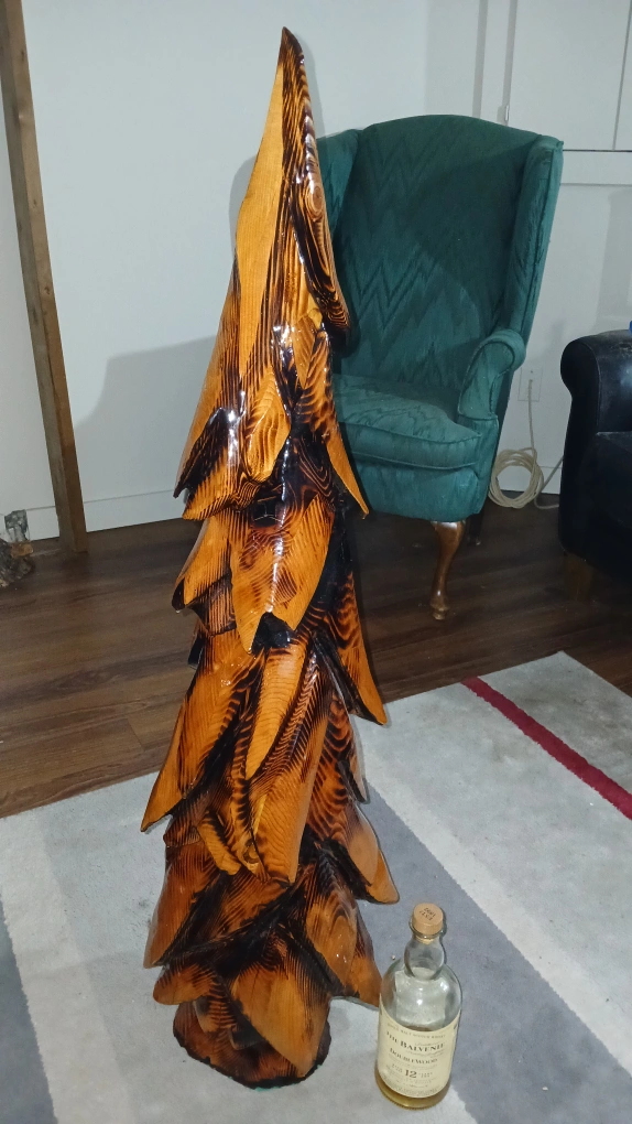Hand Carved wooden Christmas tree. Unique decor piece. Tall and slender.