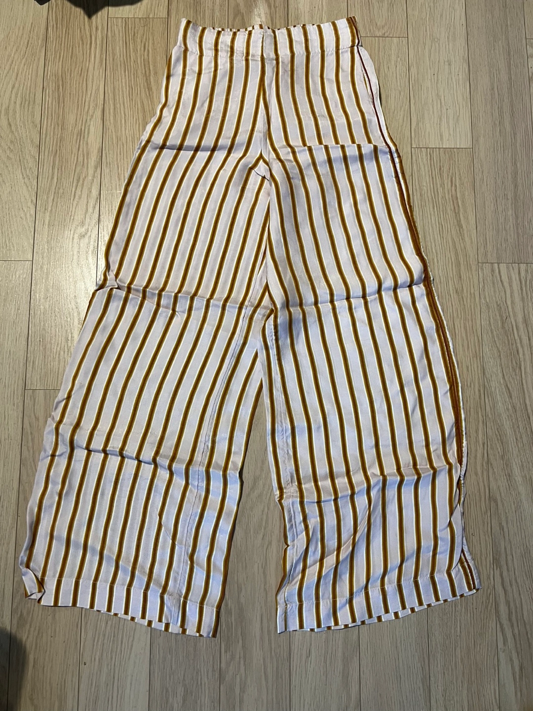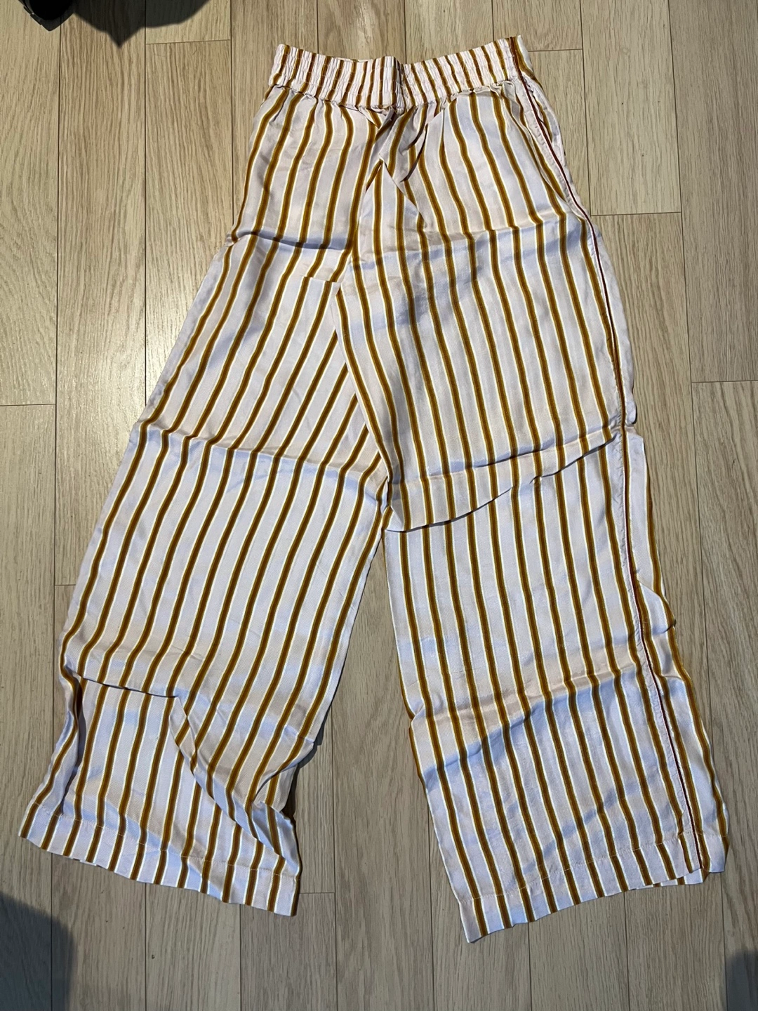 White and brown striped wide leg pants. Elastic waistband.