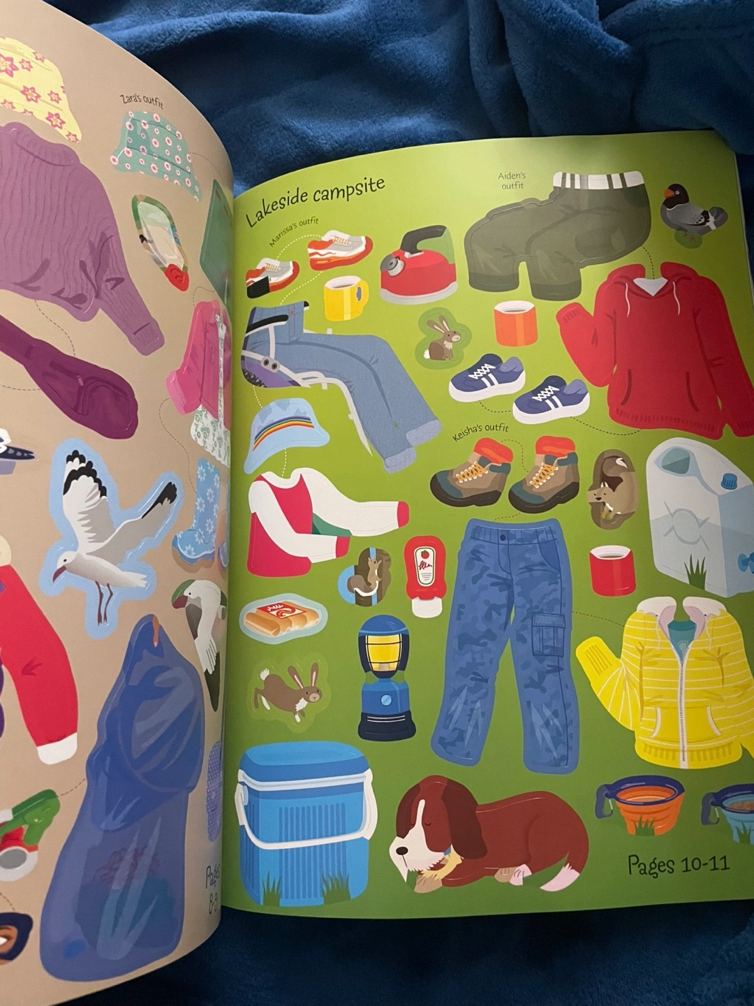 Sticker book with various scenes and clothing items for dressing dolls. Comes with multiple stickers and scenes to create.
