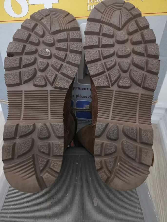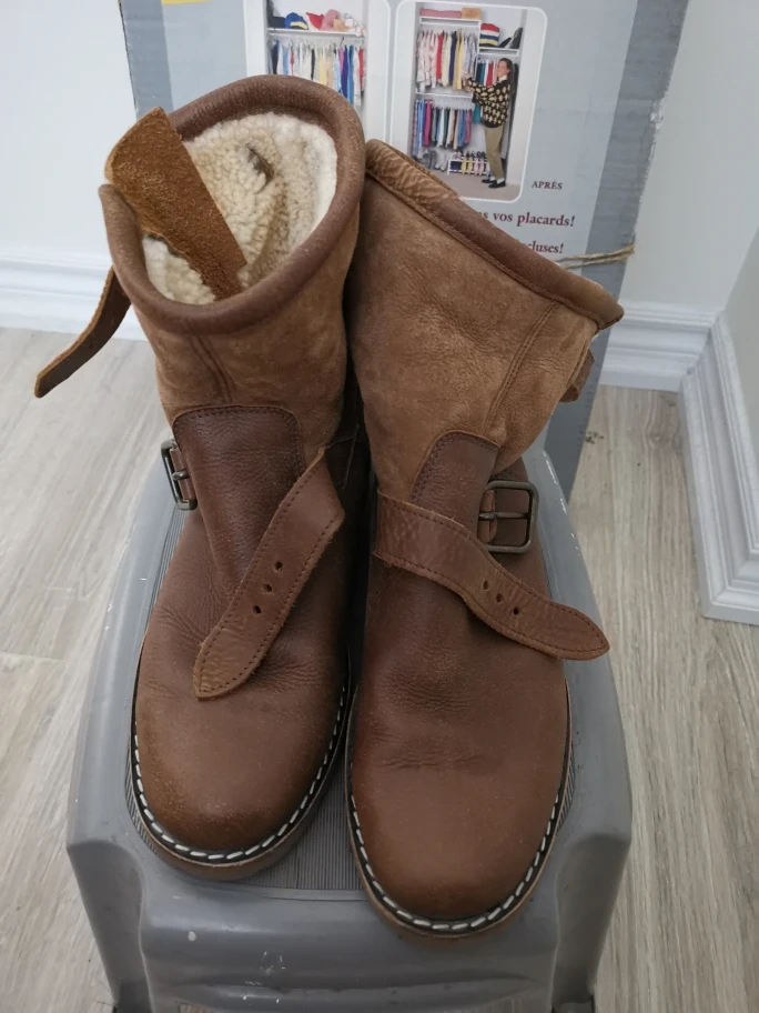Brown leather winter boots with a buckle closure. Worn several times. Still in good condition. Pet and smoke free
