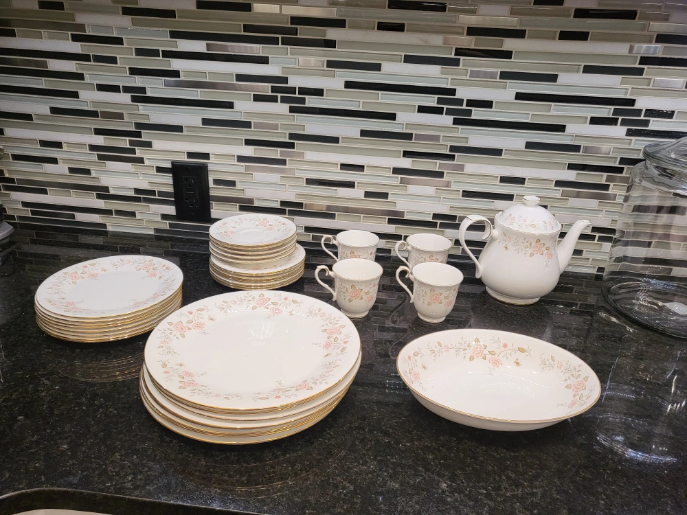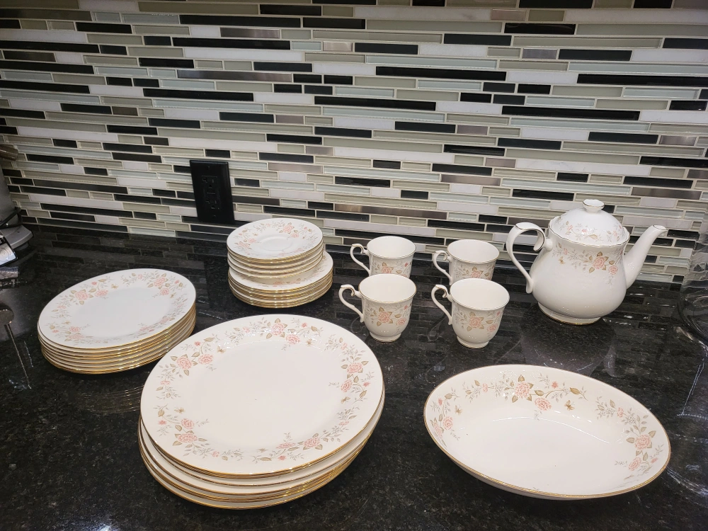 This is an authentic Royal Albert Bone China Collection. The pattern is "For All Seasons". 1984. It was used in the 80s for Christmas dinners. It's been preserved and taken care of since and not used again. Plates (4 sizes), teacups, teapot, and shallow serving dish. $400 for all Obo.