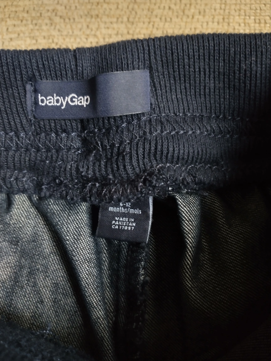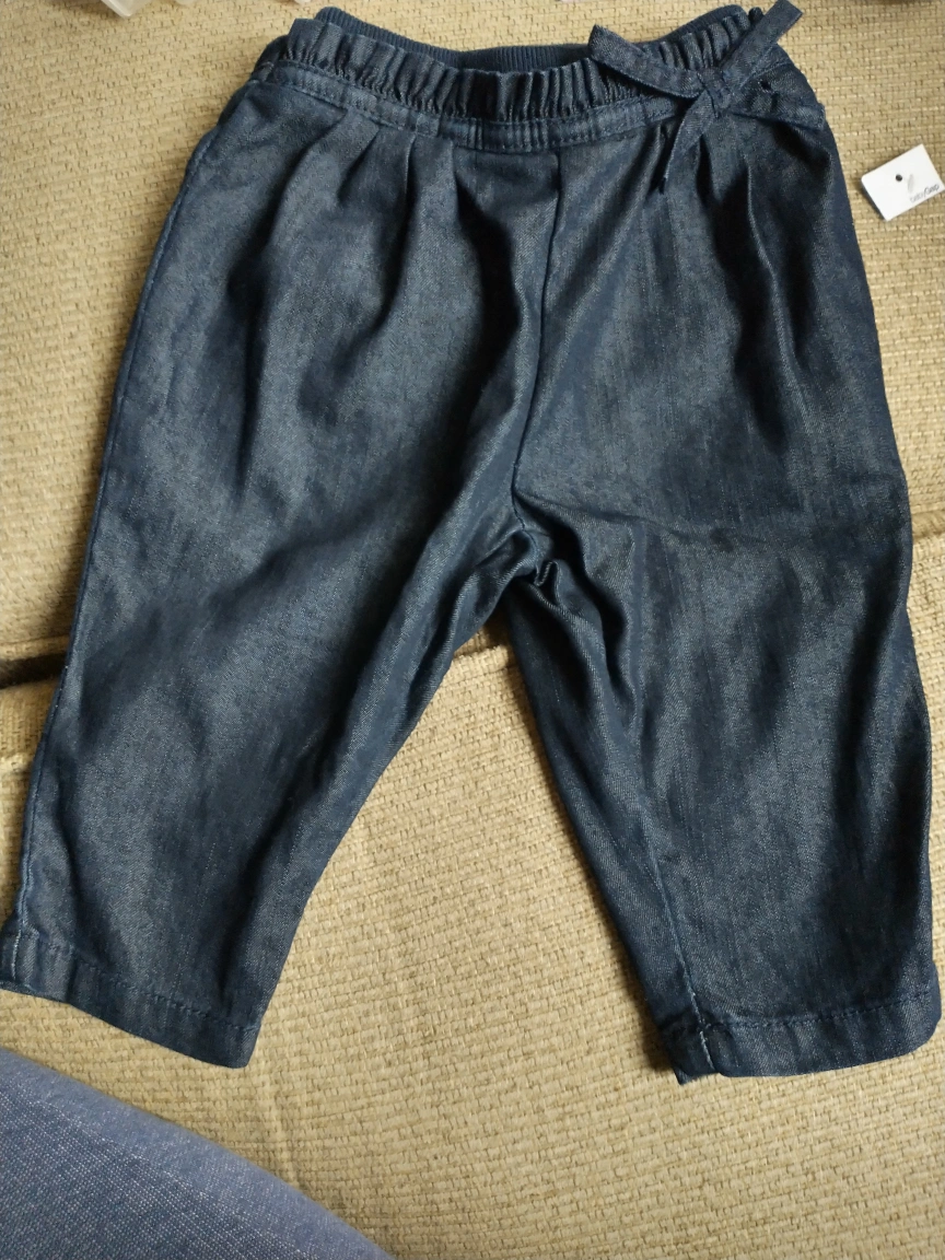 Dark wash denim pants with an elastic waistband and a tie at the front. pick up at Creditview and Bristol Rd West outside Pizza Hut at River Run plaza.. final sale.