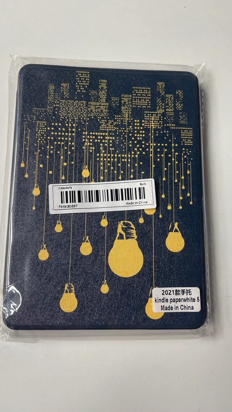 New in packaging. Blue case with gold lightbulb design. Fits Kindle Paperwhite 5 - 2021