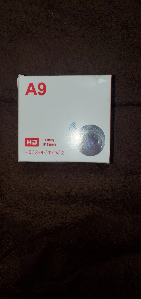 HD Battery IP Camera. Wireless, night vision, motion detection, remote viewing. Comes with a charging cable, instruction manual, and mounting accessories.