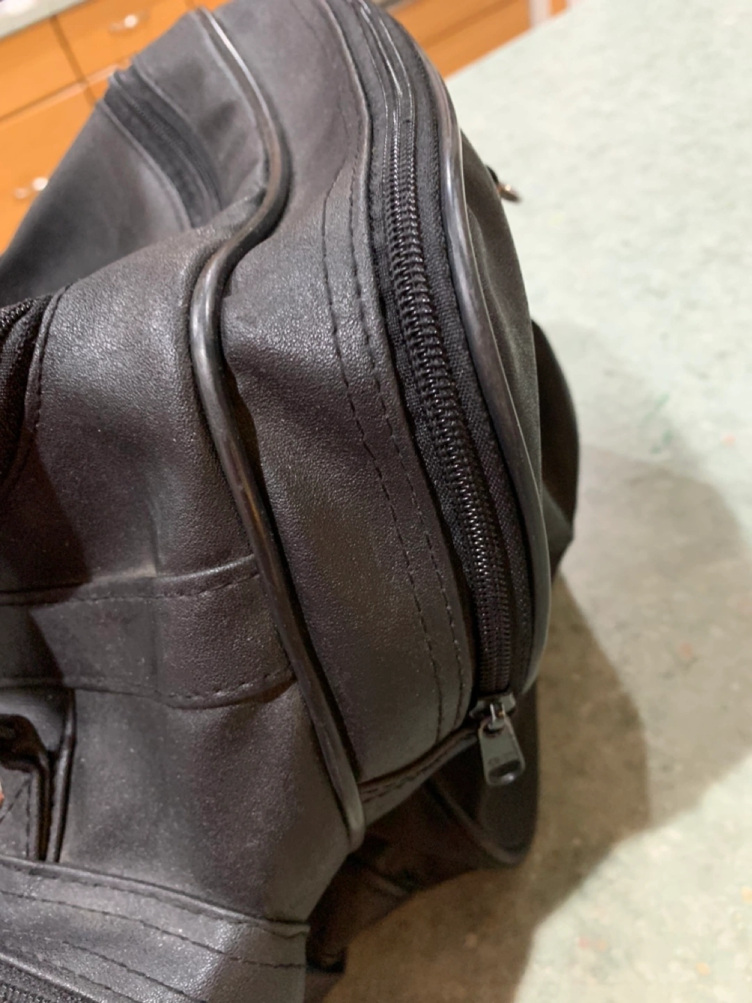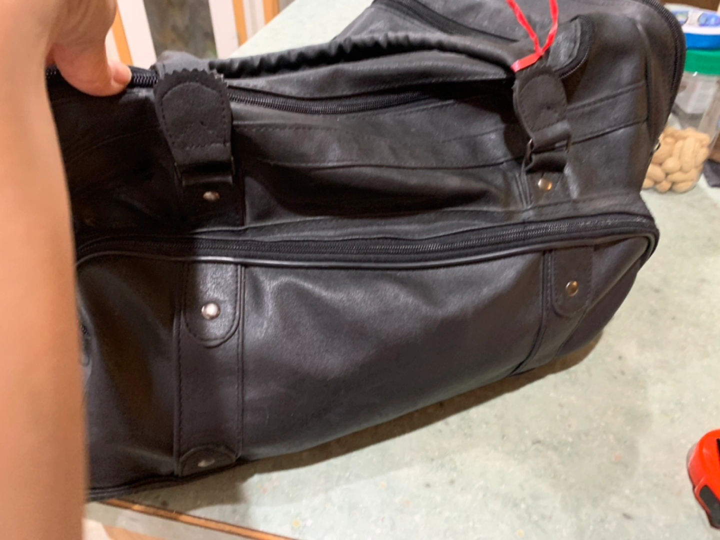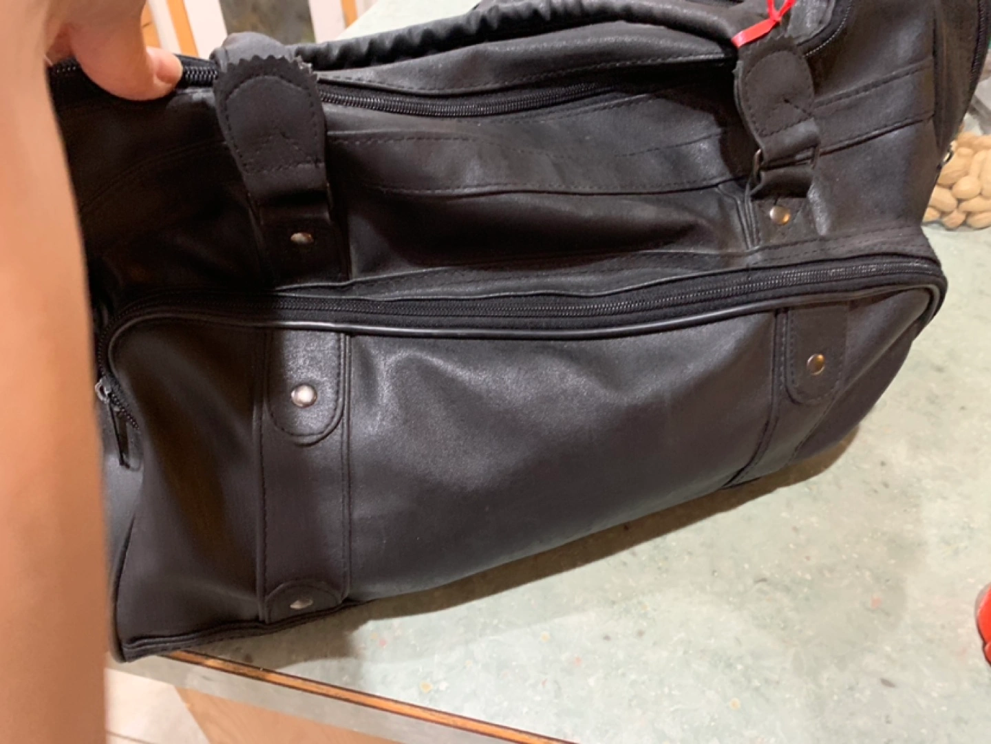 Black leather weekender bag. Has two top handles and a zipper closure.21 inches length 11 width Appropriate for travel as aha d carry