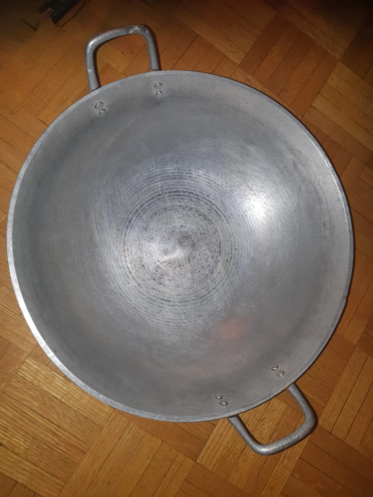 Set of 3 pots and pans. Includes a stock pot, frying pan, and wok. All in good condition.