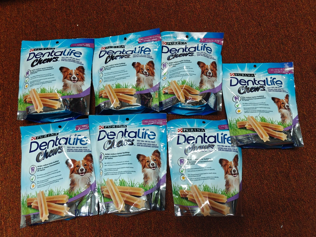 Brand new and not opened Expiry date Dec 2024 $2 for 1 bag or $12 for all 7 bags For dogs 10-22lbs Each pack contains 17 chews Meetup at my location (Warden and Steeles Ave) and cash only