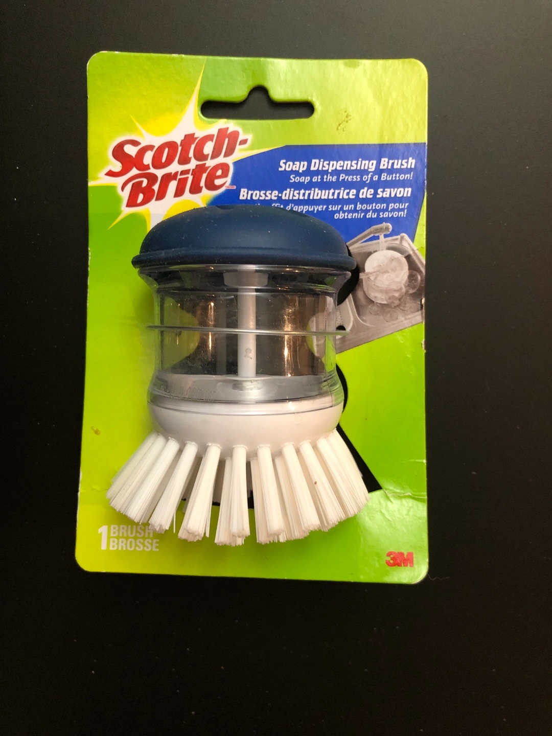 Soap dispensing brush, blue and white. Press a button for soap. Free shipping: If you spend more than 20 dollars in my list, you can get free shipping ( only in the old Toronto)Not including furniture Downtown pick up Cash only