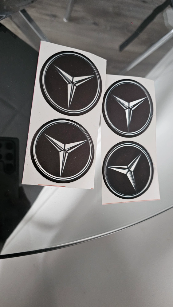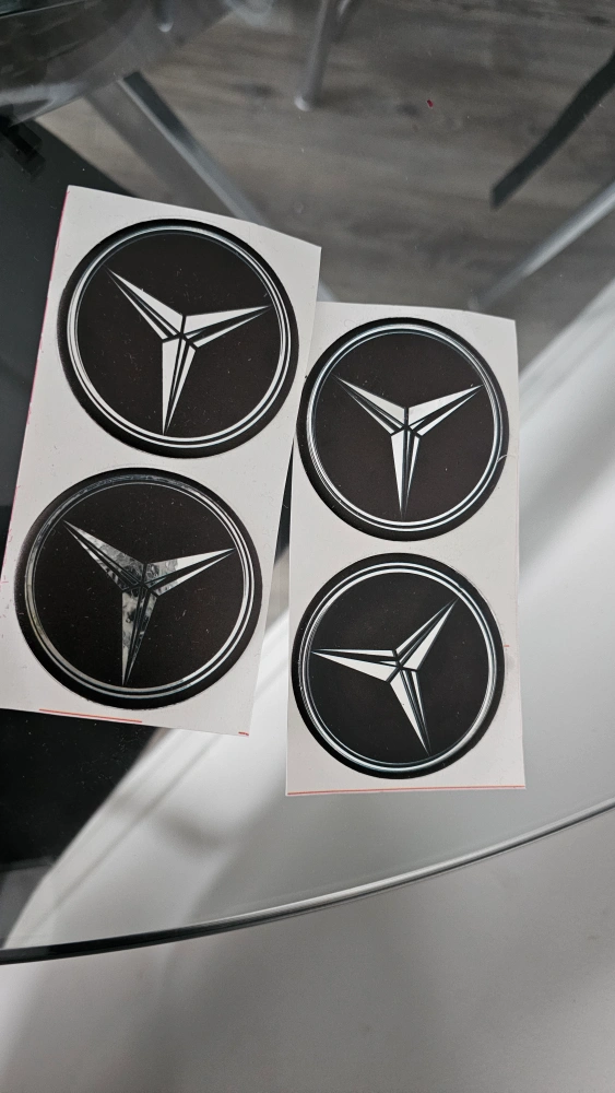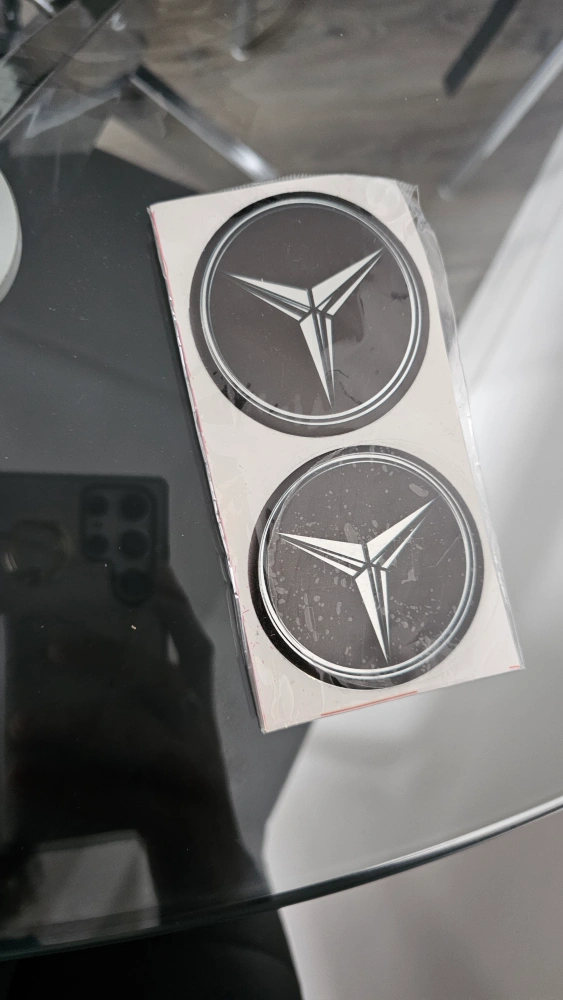 4x Car Center Caps Stickers, new in packaging. Black with silver trim.