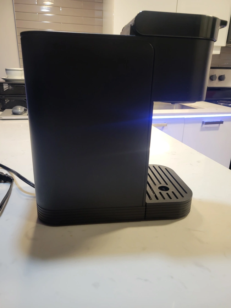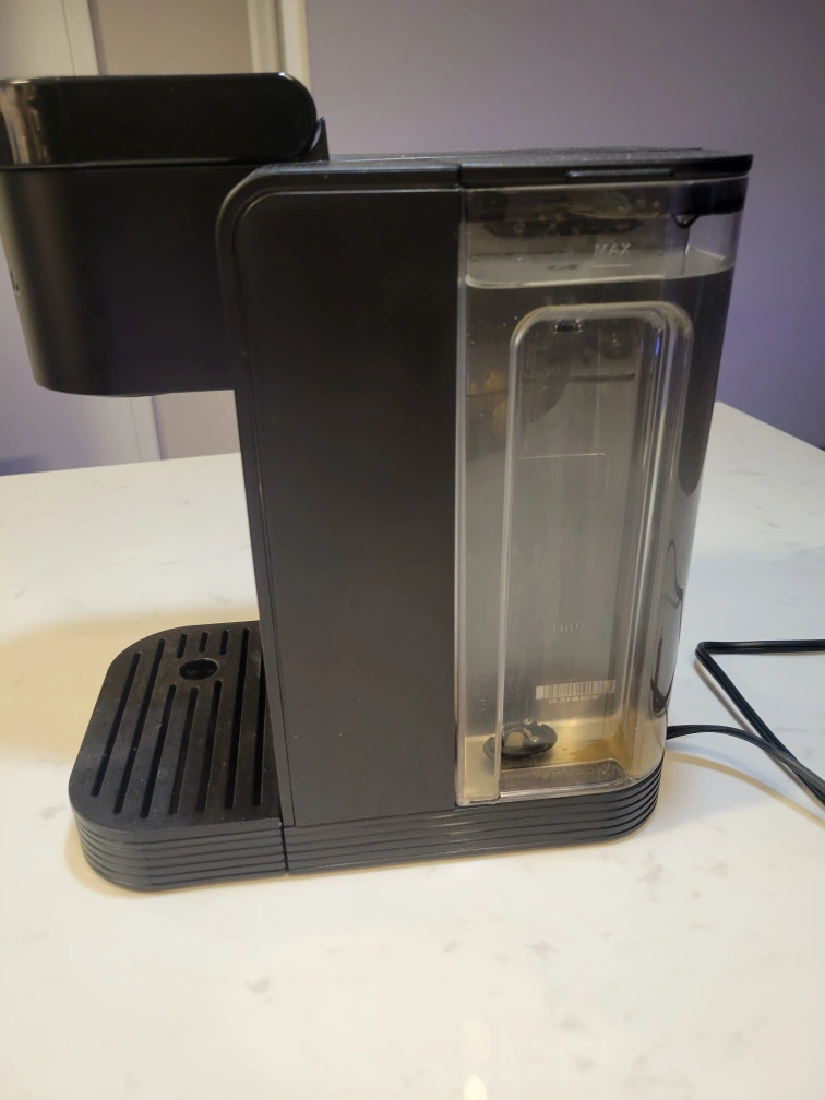 Black coffee maker. Includes removable water reservoir.