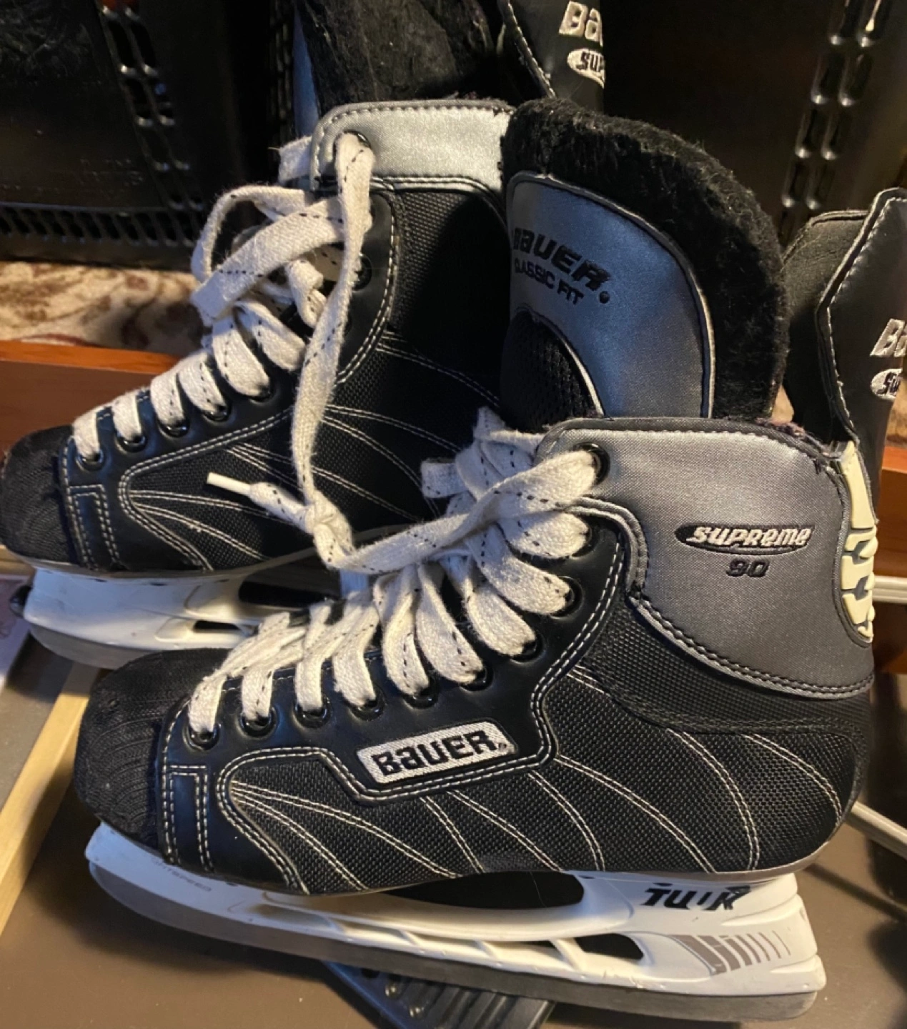 Black and grey ice skates. Bauer Supreme 90, classic fit. Size 5D US 6 EU 38.5