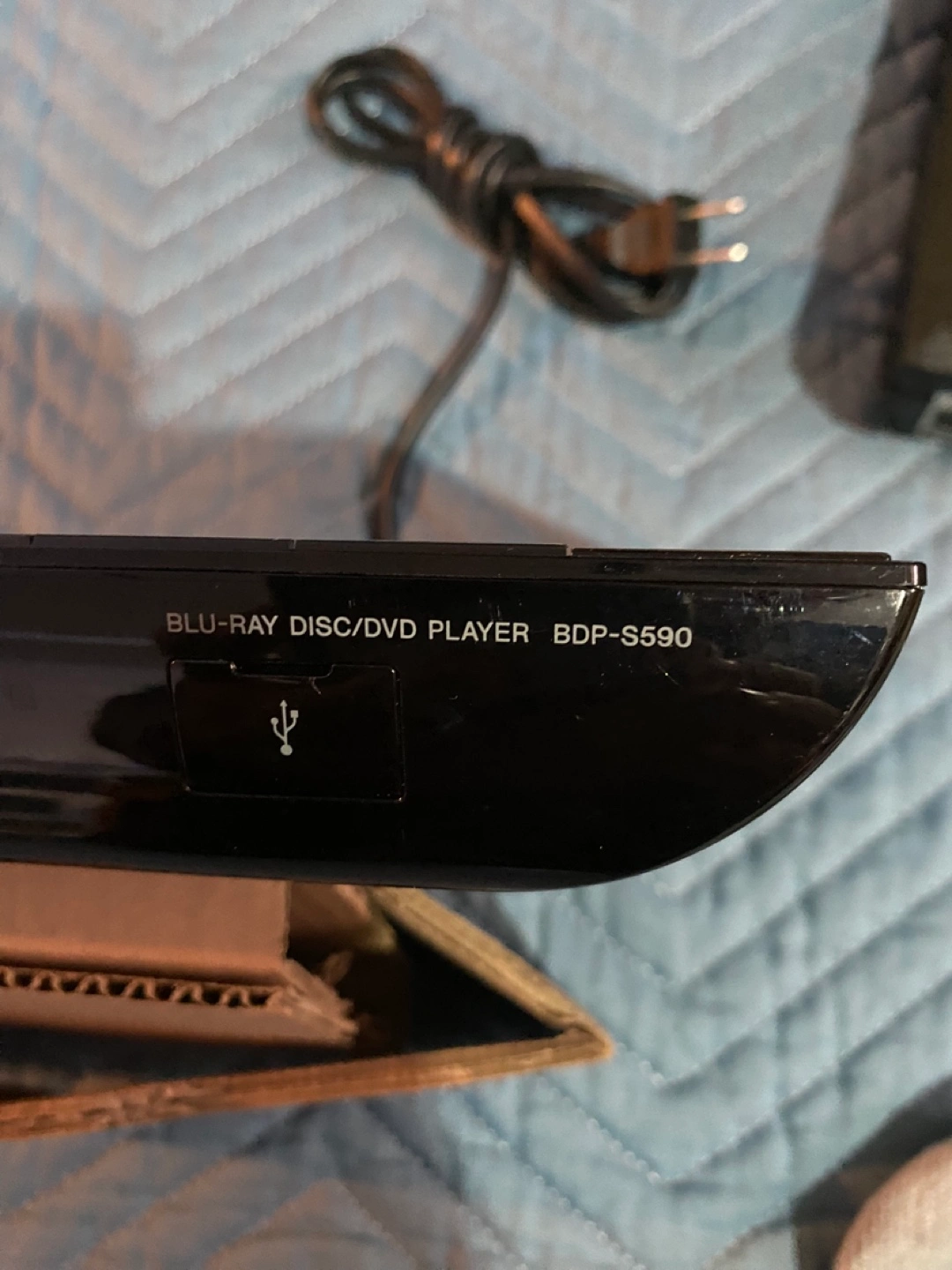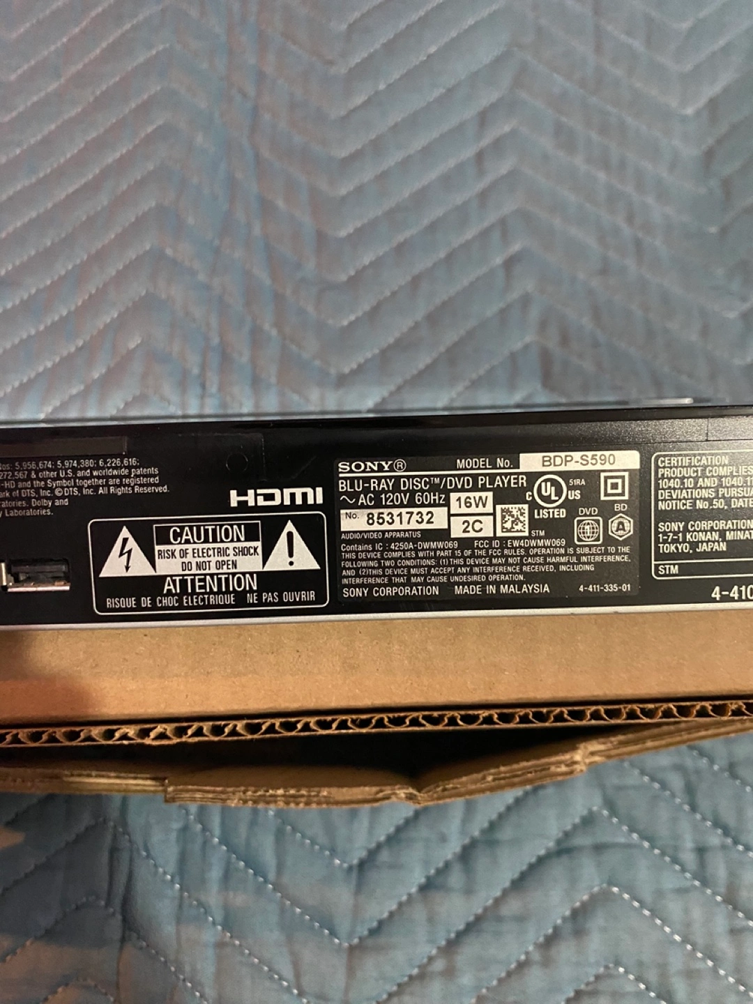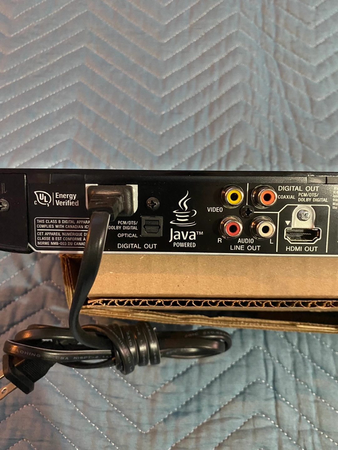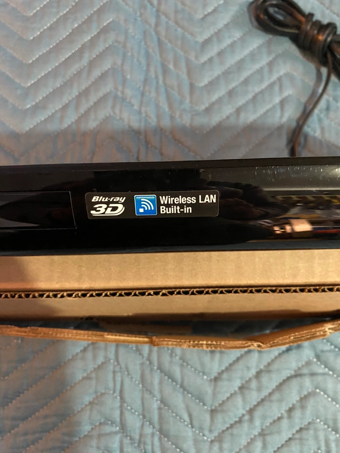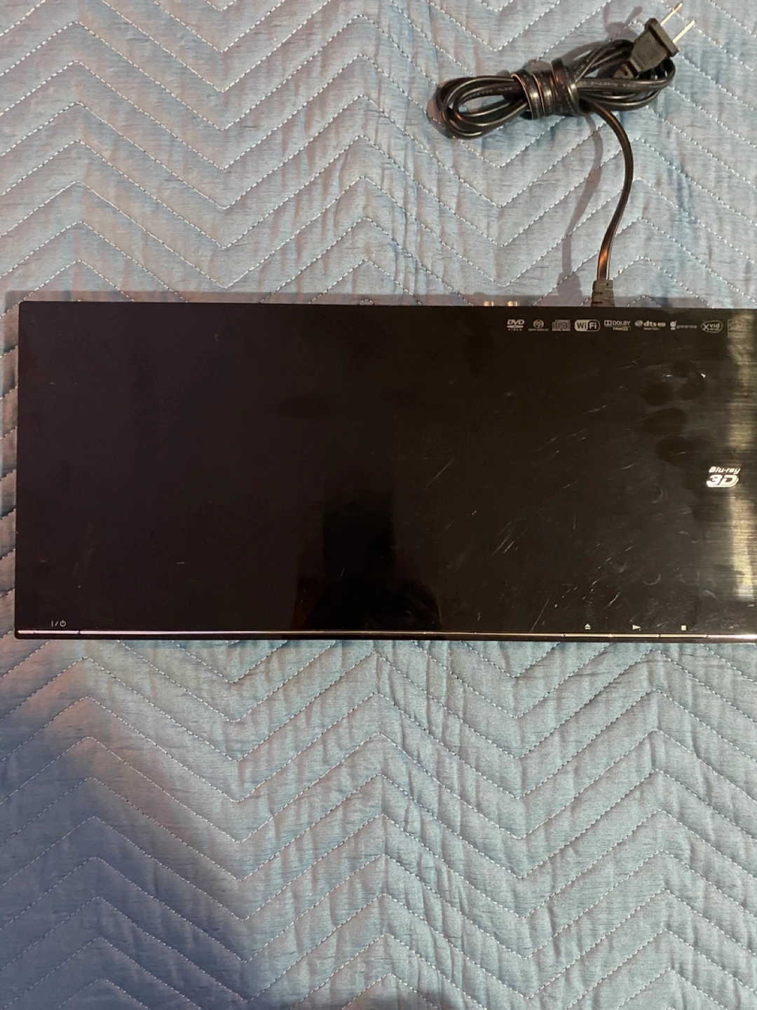 Blu-Ray Disc/DVD Player with built-in WiFi. 3D Blu-Ray compatible. Includes power cord and remote control.