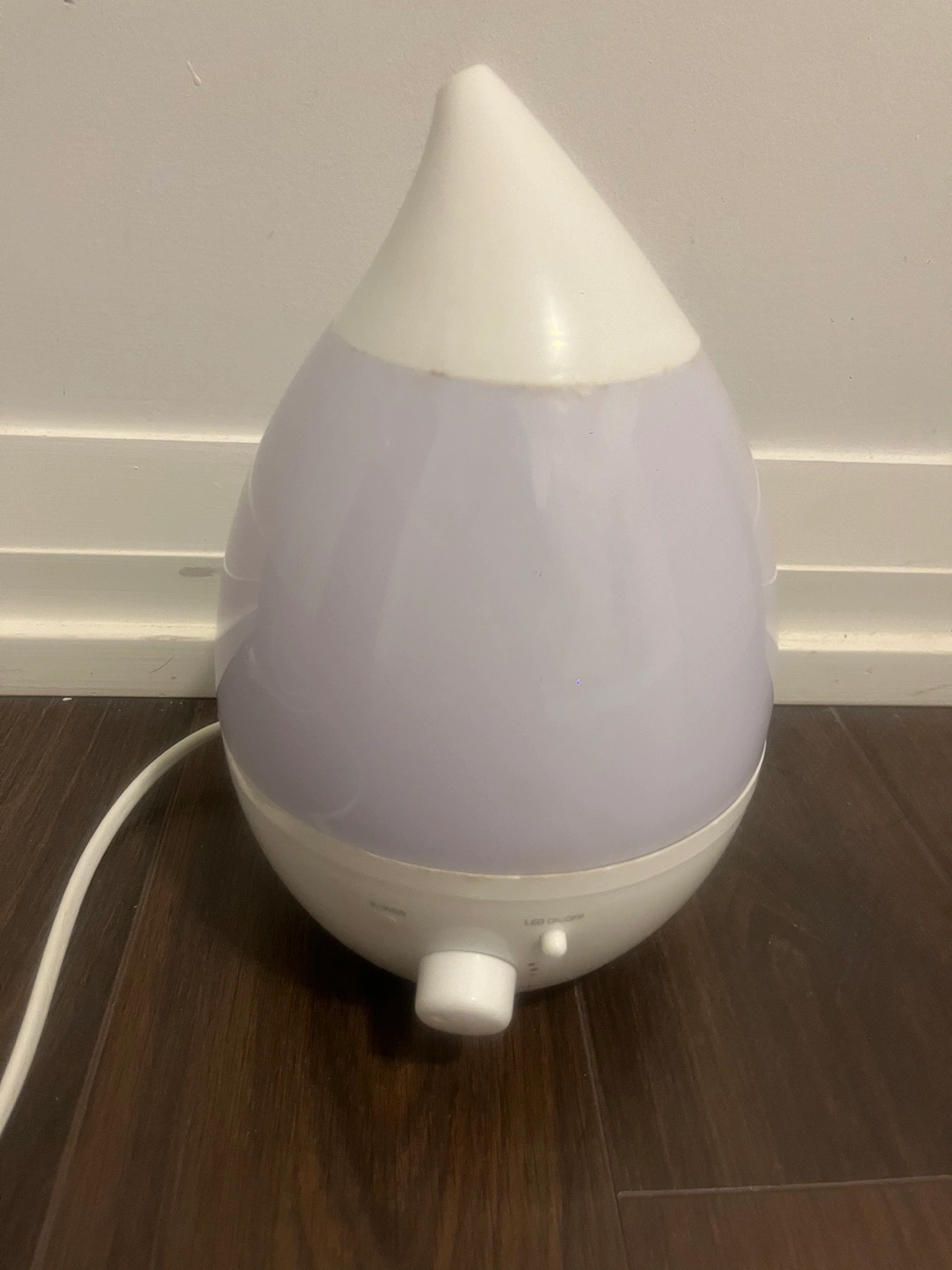 Features a light and mist control knob. Includes power cord. Can change colours. Good for decoration as well.