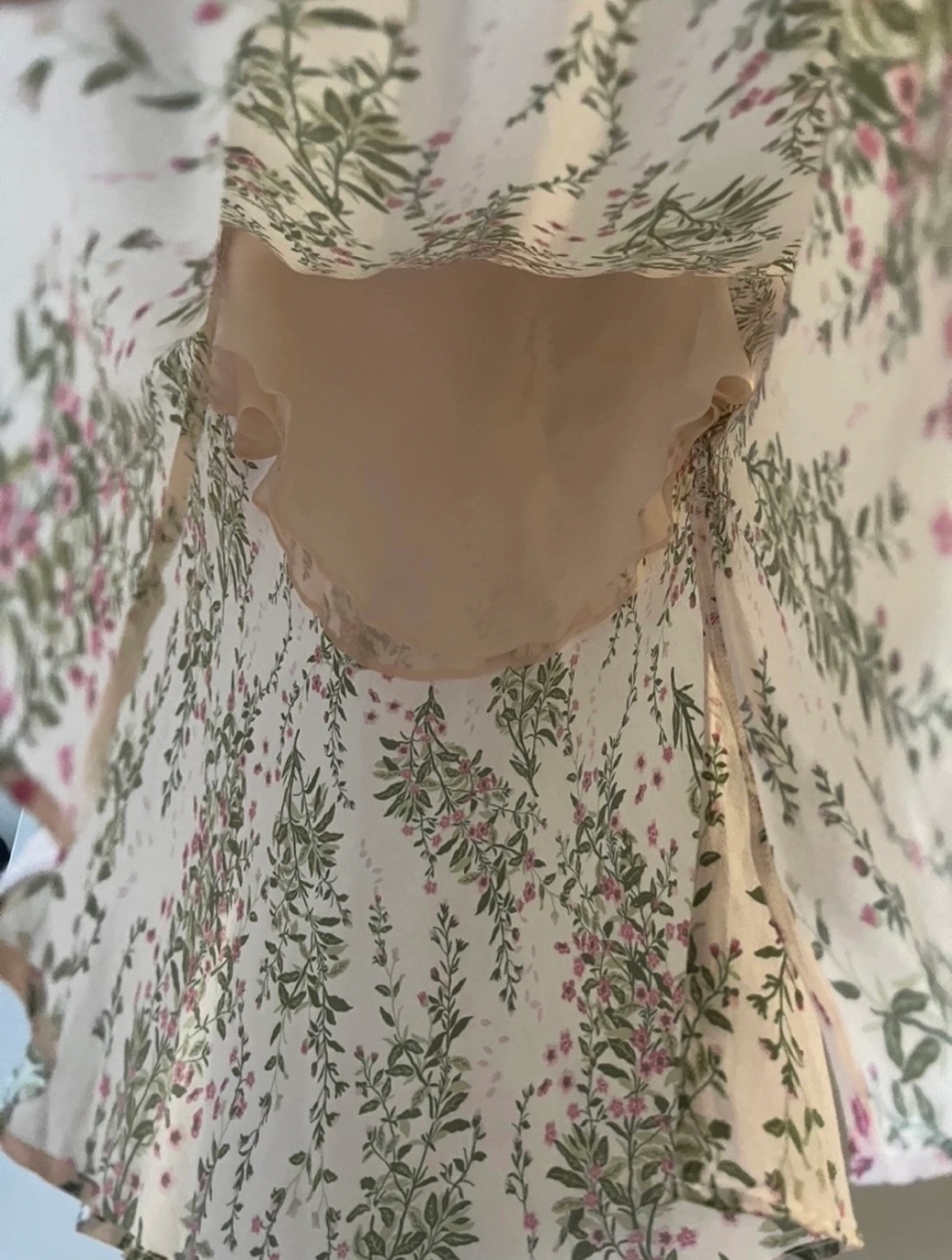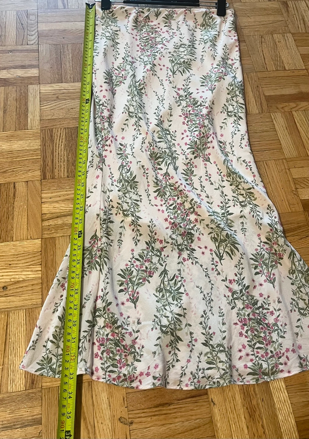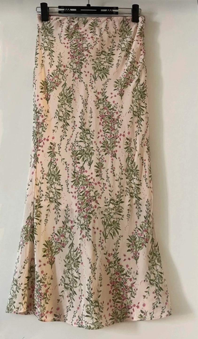 100% silk. Printed skirt, elastic waistband, suitable for small sizes. Skirt length: Approximately 84cm Cash only