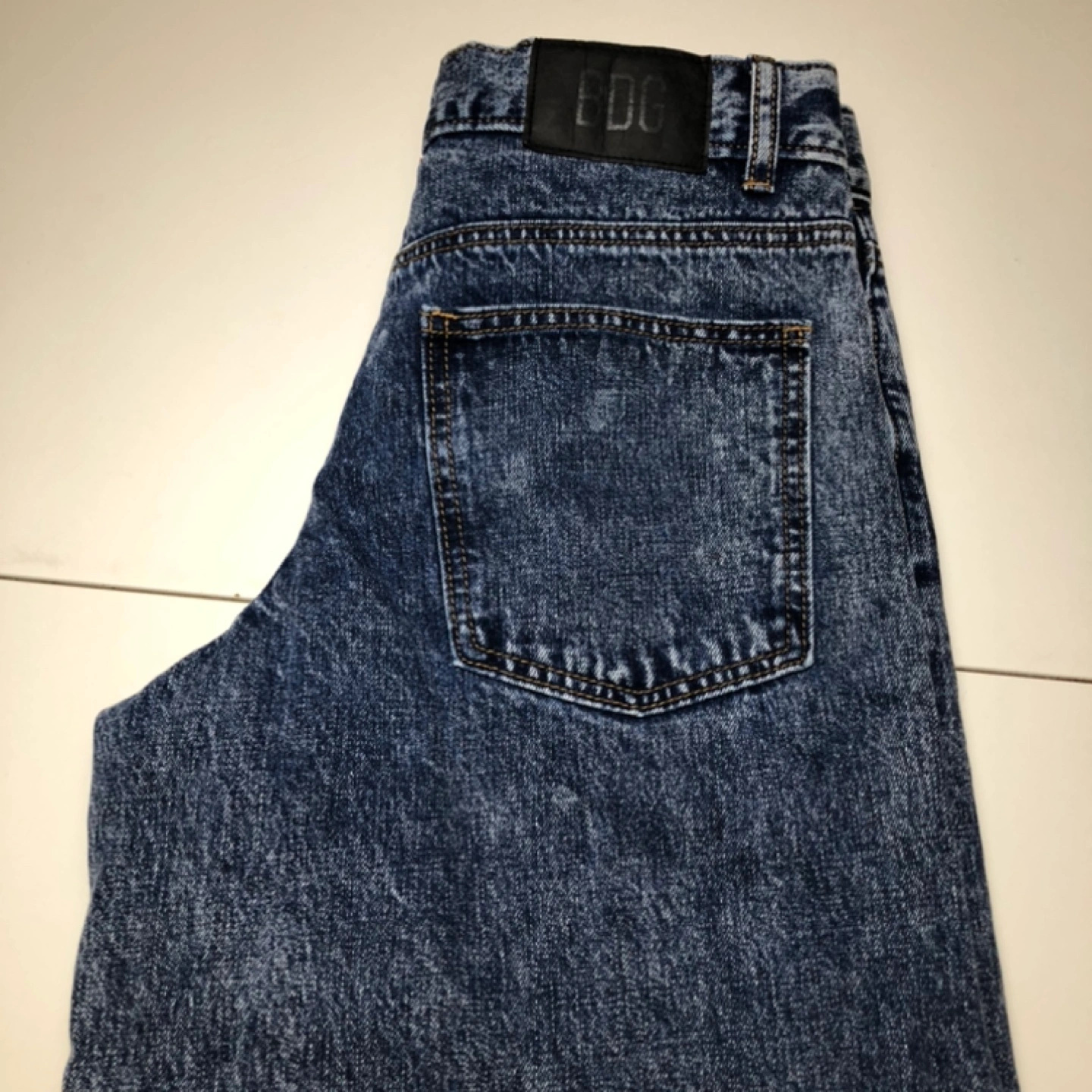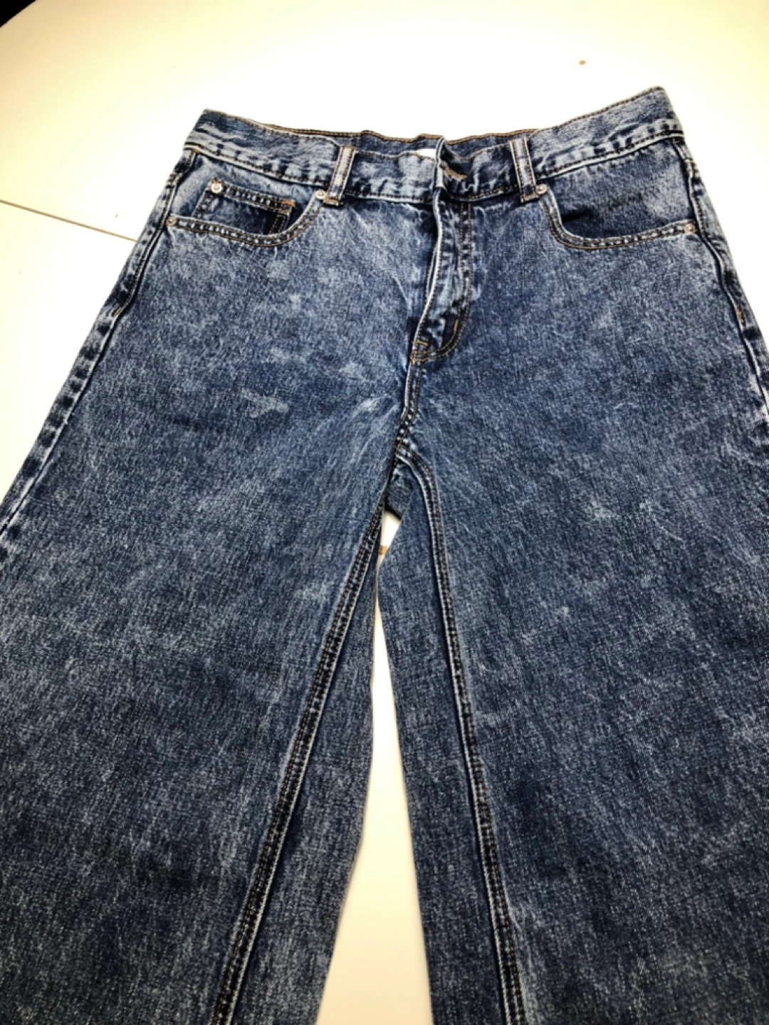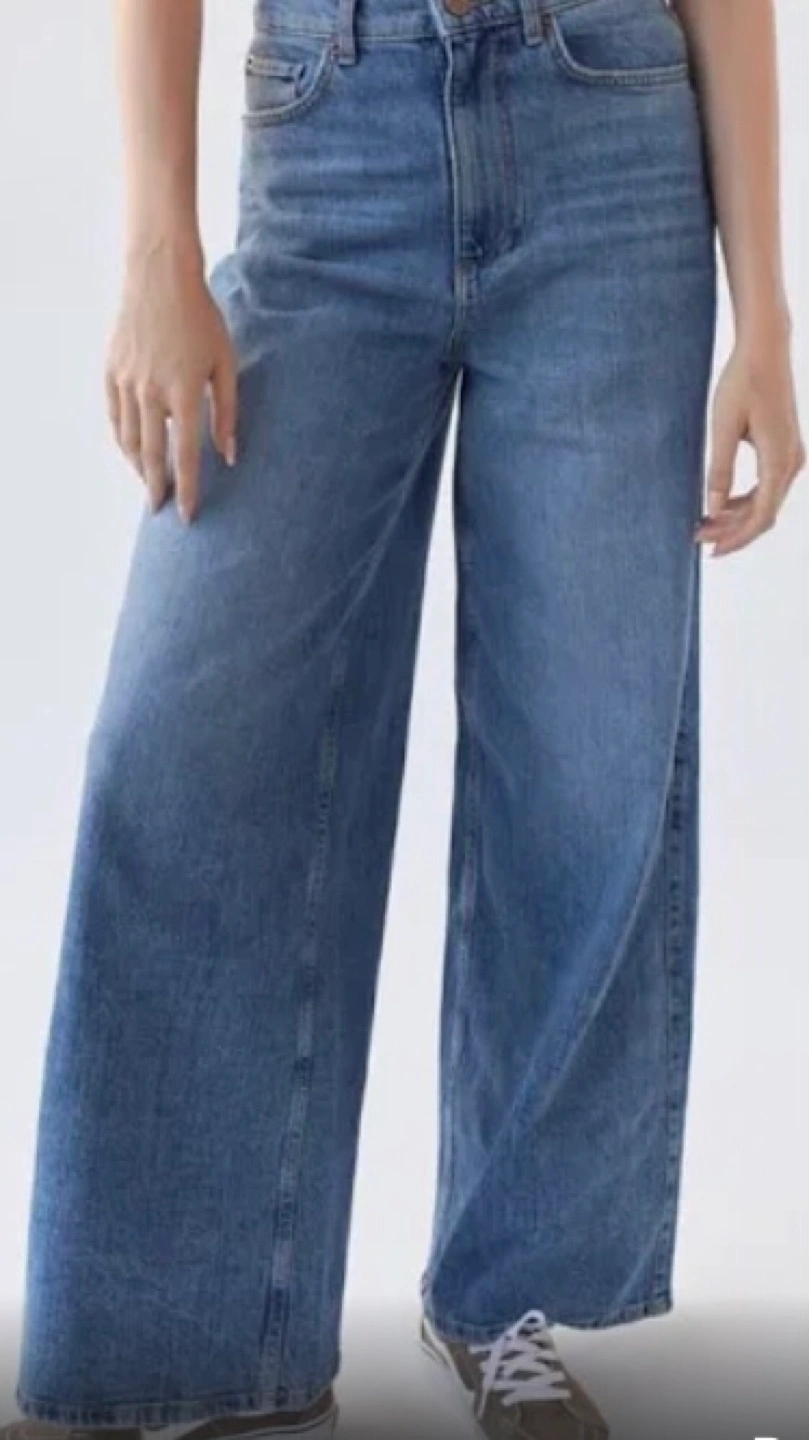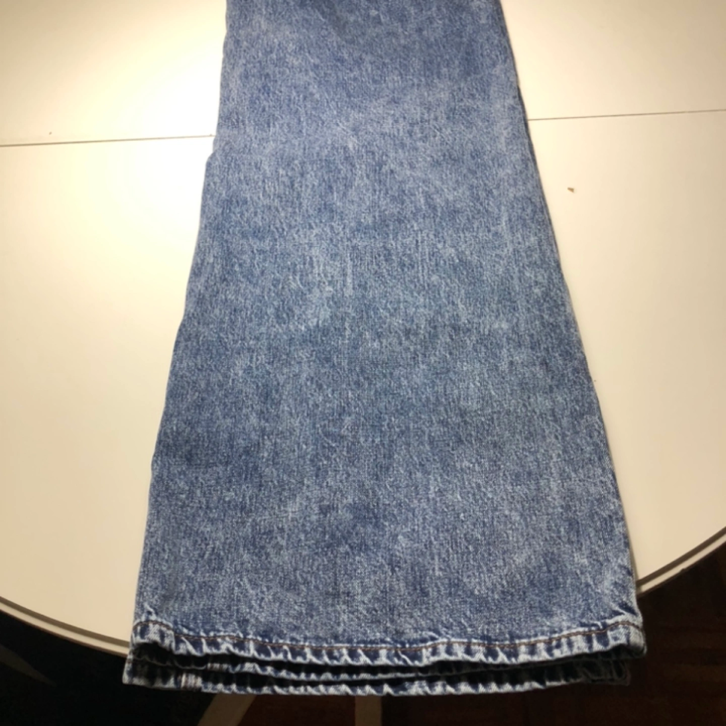 High waisted wide leg jeans with a light acid wash. Size 29. Great condition.