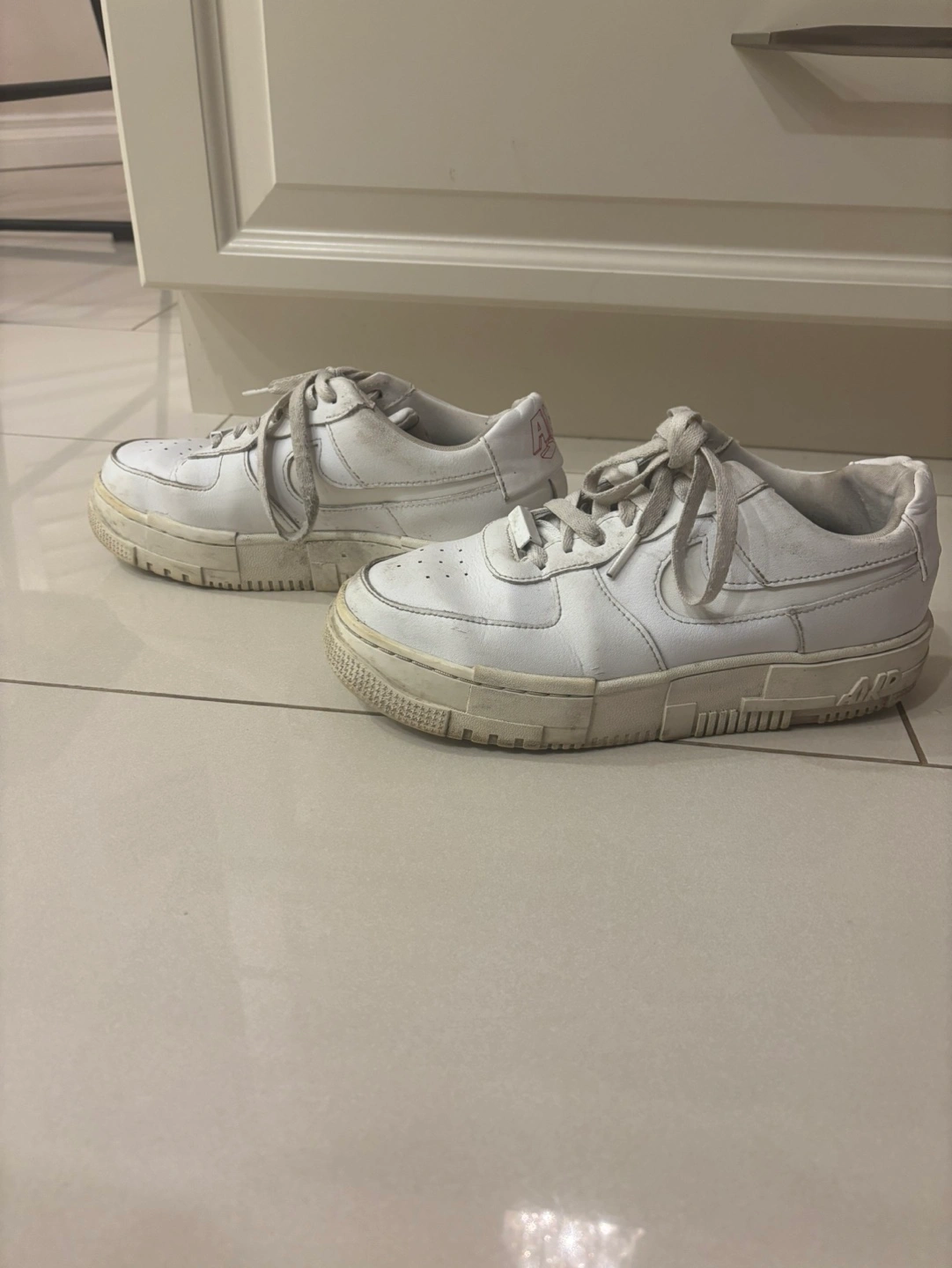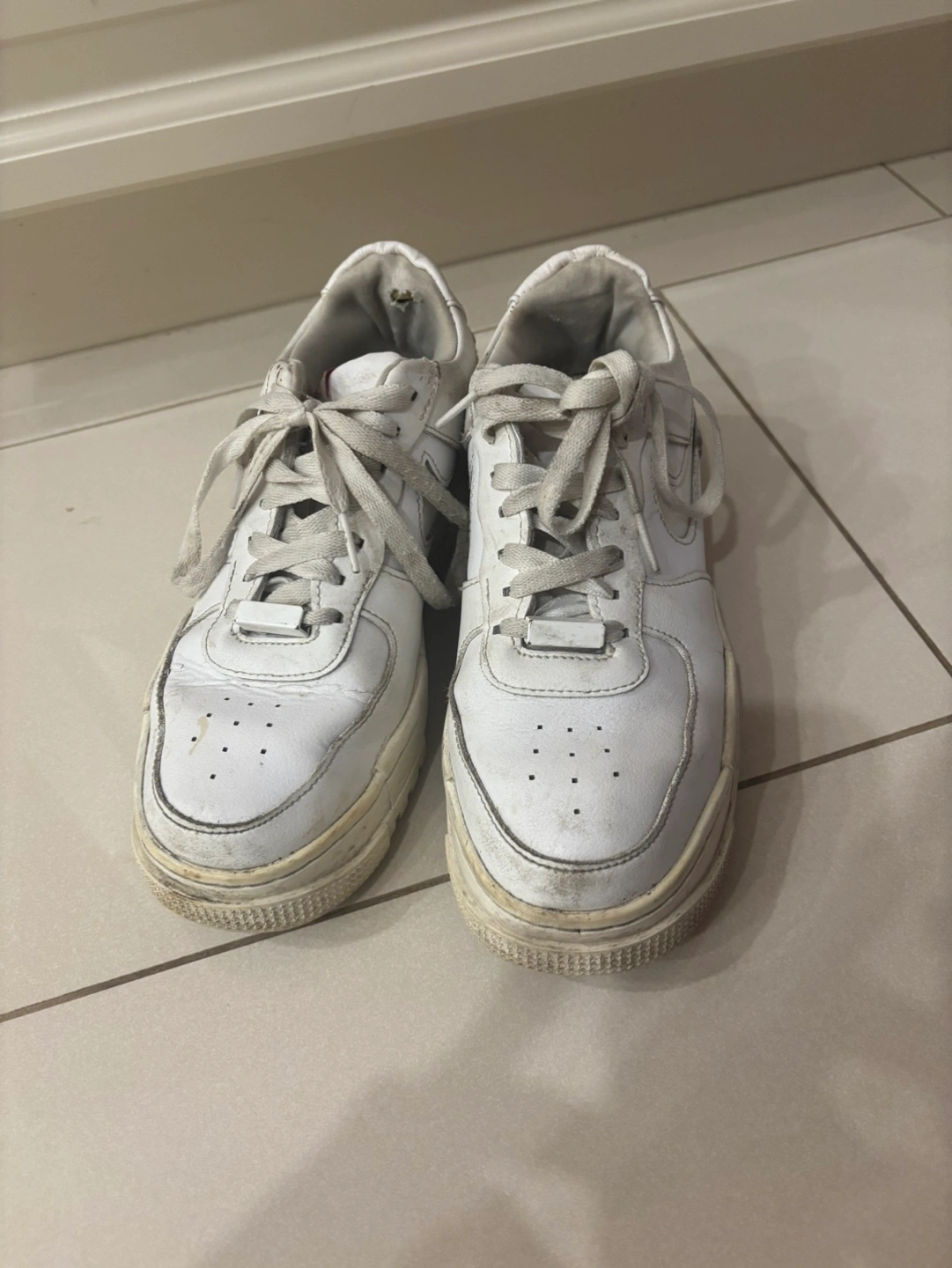 White leather sneakers with a platform sole. Good condition, purchased at the Vancouver Nordstrom
