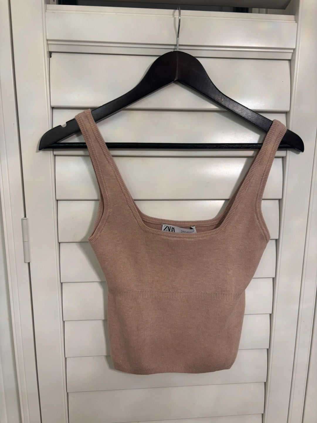 Lightweight knit tank top. Sleeveless, scoop neck, fitted but comfortable. Never worn