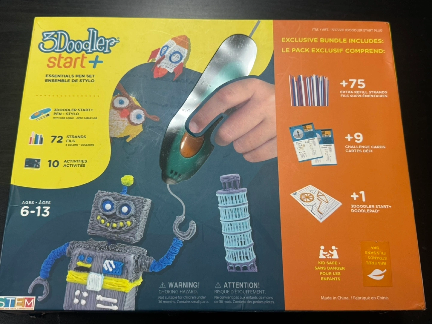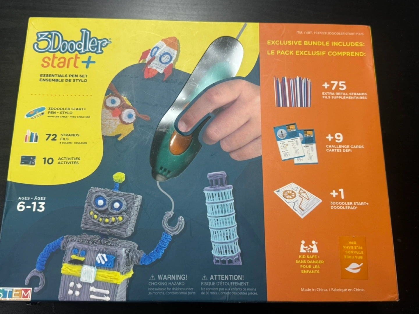 3Doodler Start+ Pen Set, includes 75 extra refill strands, 9 challenge cards * pen is not working somehow * Other parts are there Around 100 strands available $10 only Pickup near Scarborough town centre