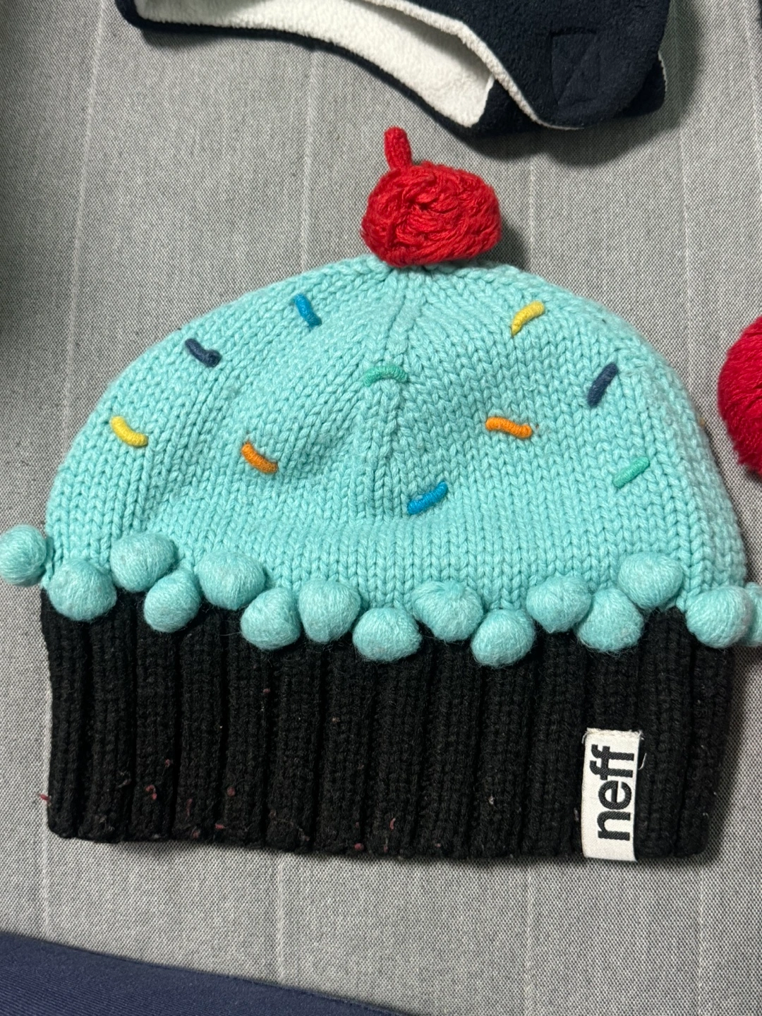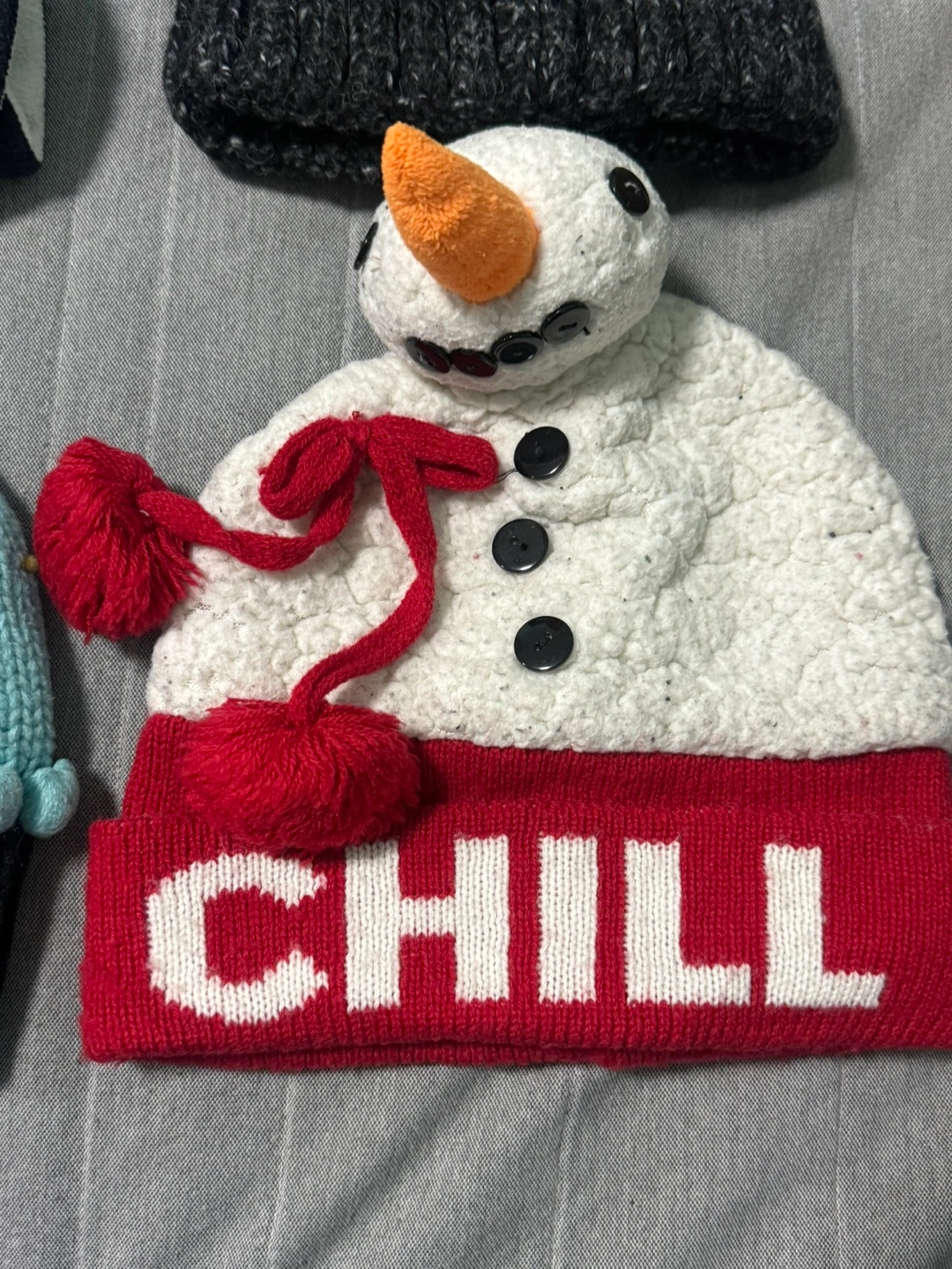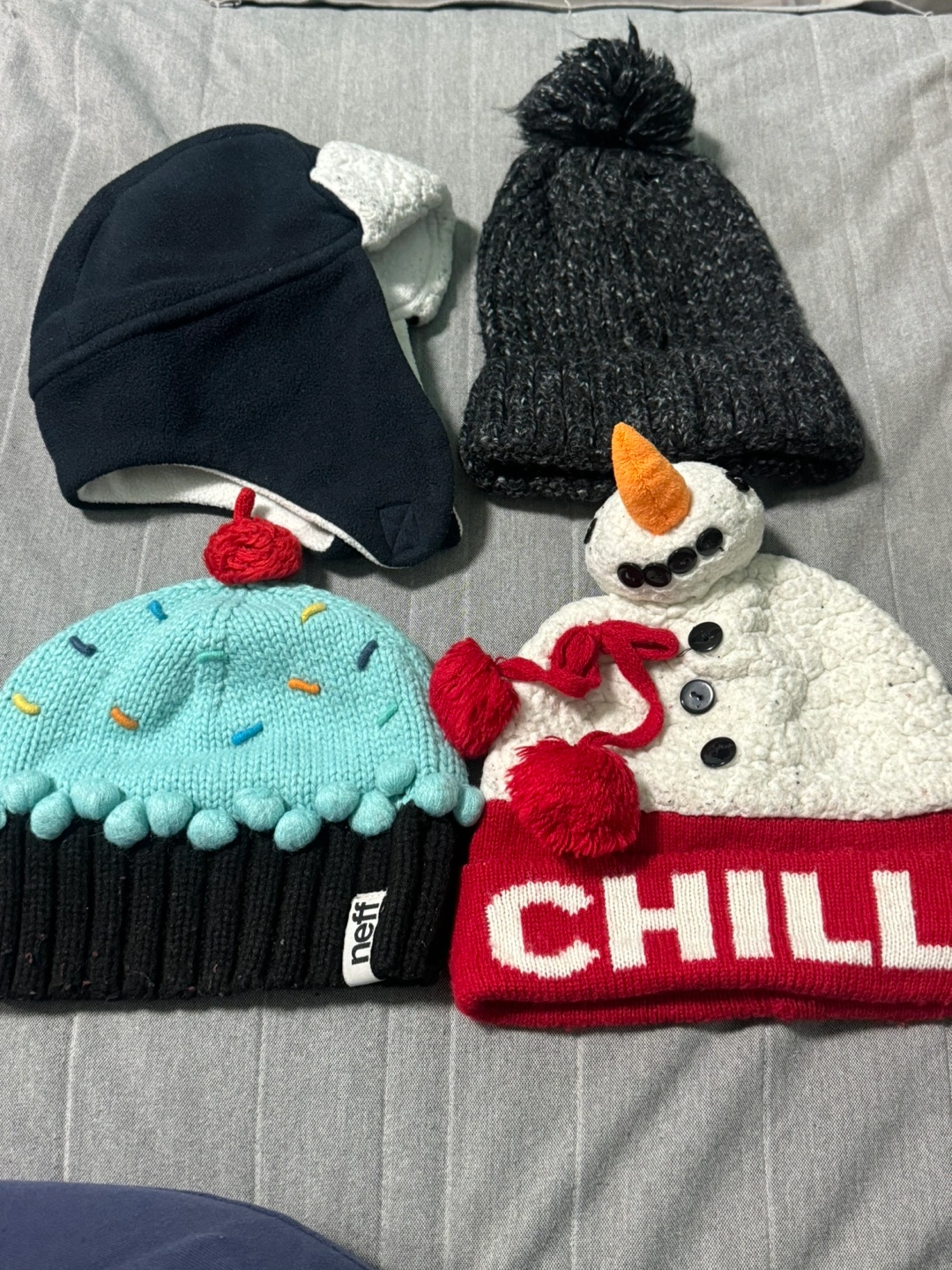 Bundle of 4 kids’ winter hats. Snowman hat, Cupcake hat, beanie hat and black knit hat All are in great condition $5 all together Pickup near Scarborough town centre