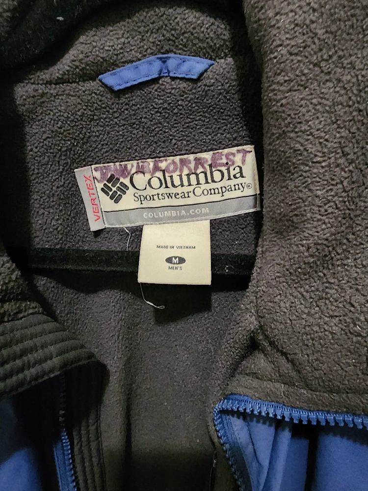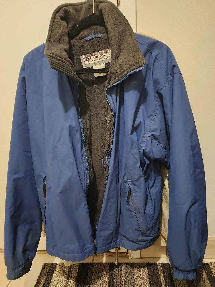Blue jacket with fleece lining. Two zippered pockets. Size M.