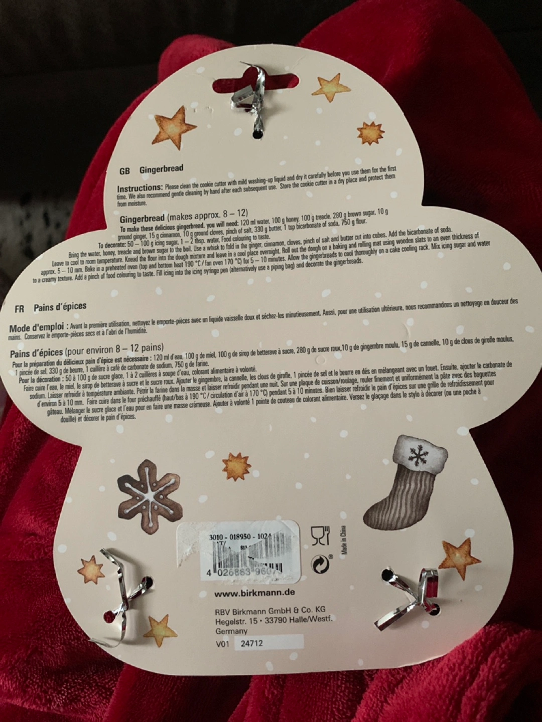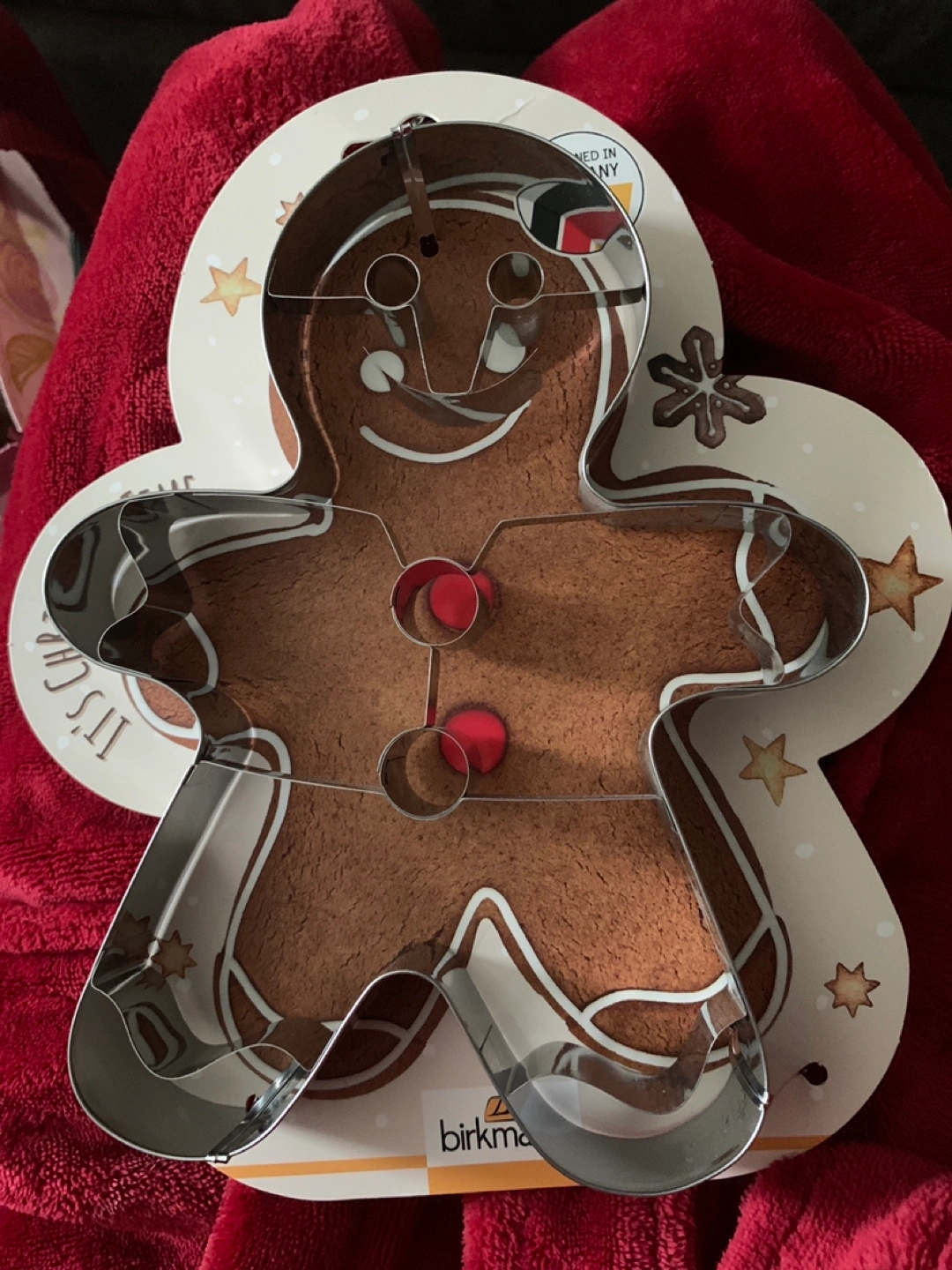 Stainless steel gingerbread man cookie cutter. Includes recipe on packaging. porch pickup near erin mills town center