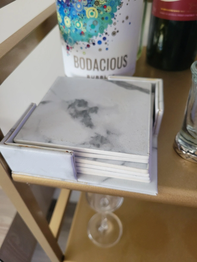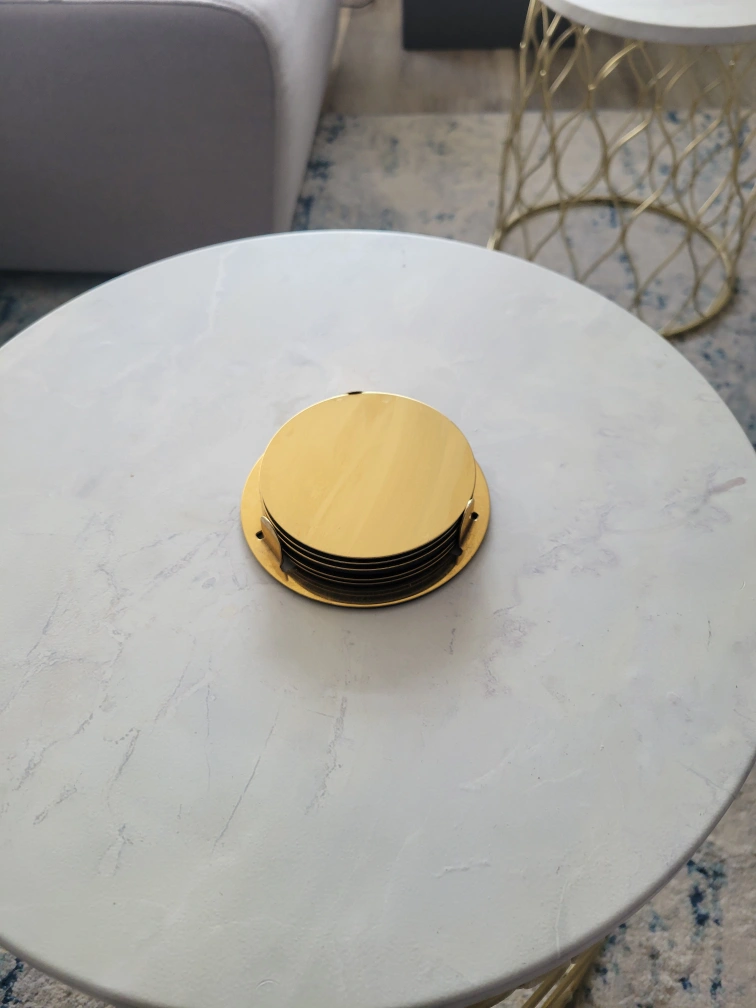 coasters. Includes cork, marble and gold coasters. Great for protecting your furniture.