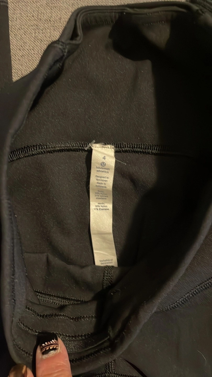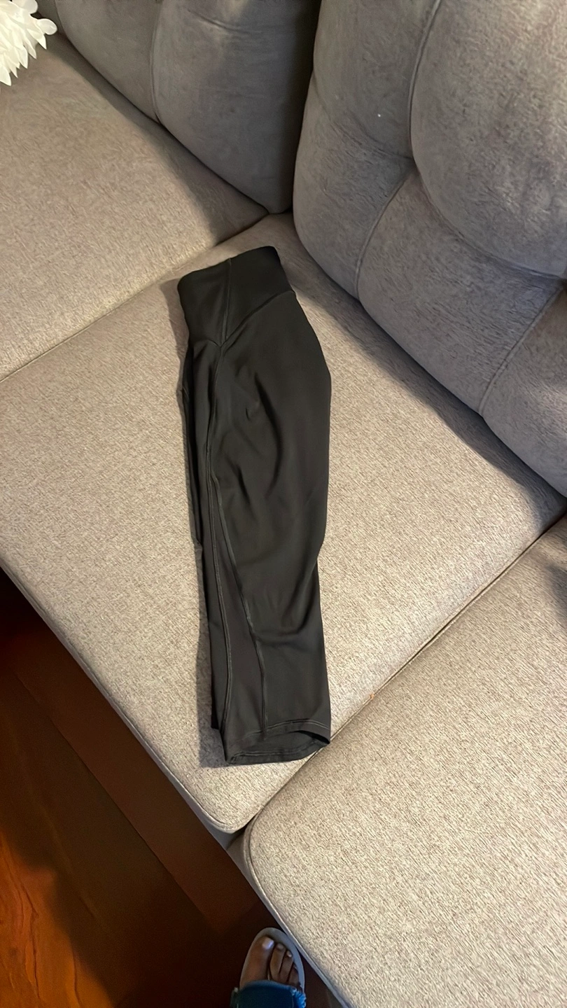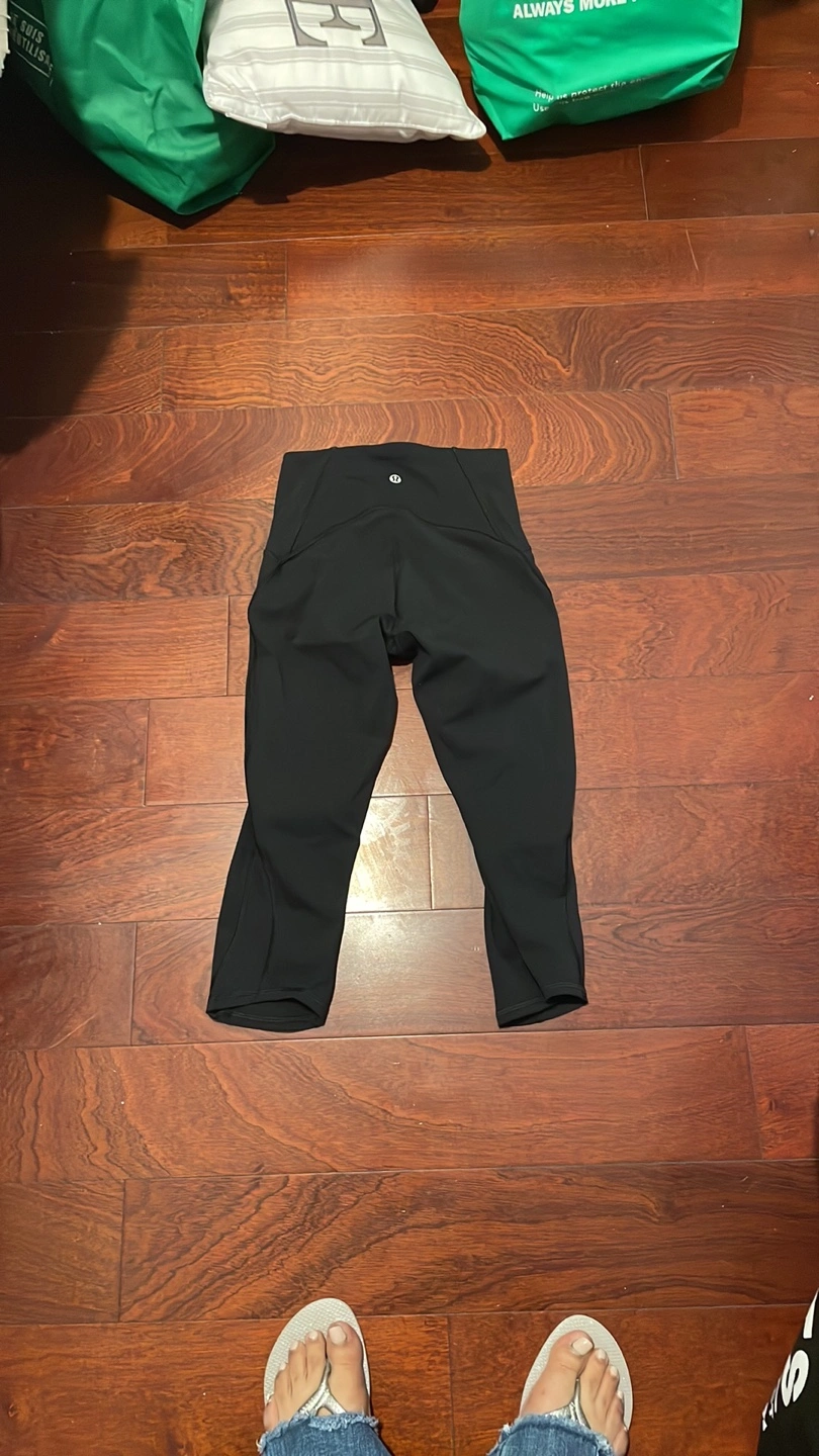 Black Lululemon Align crop pants. Size 4 High waisted and cropped. One small pocket on the back waistband.