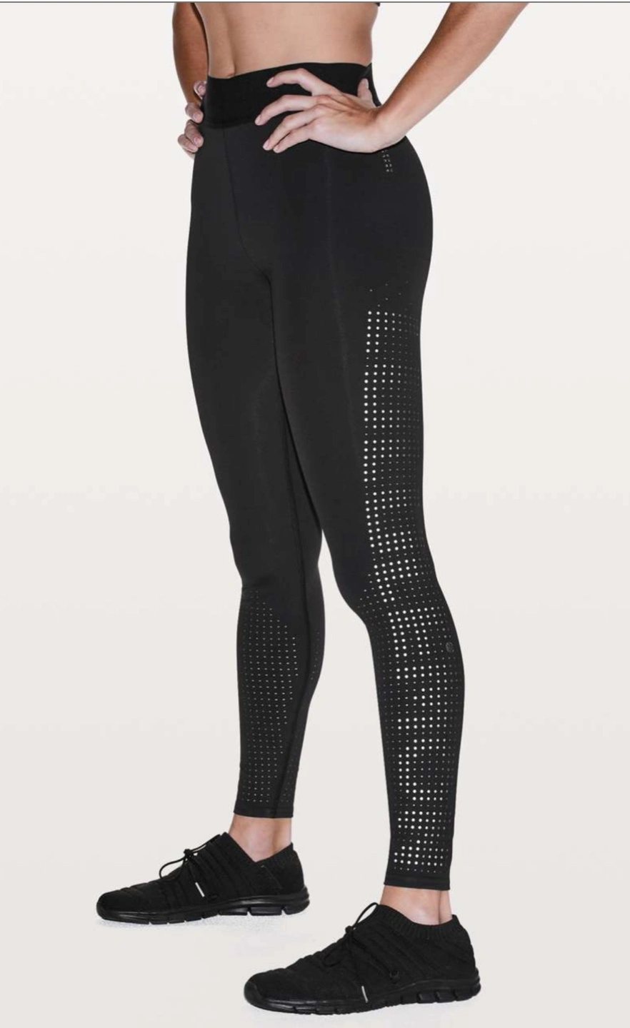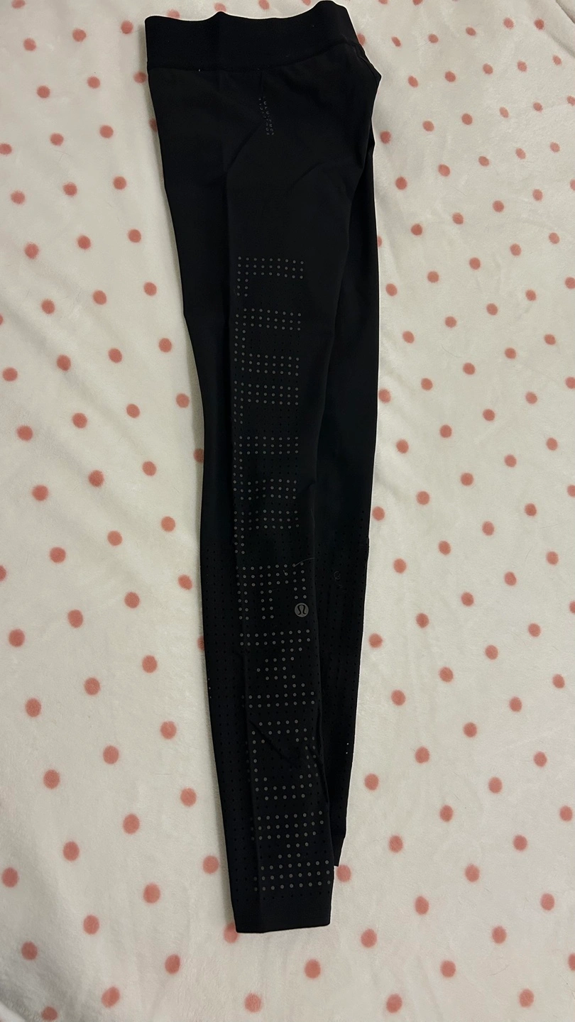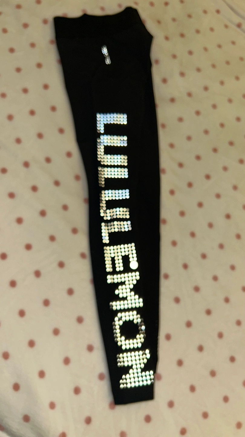 **FINAL PRICE. Black tights with reflective details on the leg. Size 4. From lululemon collab with soulcycle: https://www.lulufanatics.com/item/44373/lululemon-ride-reflect-tight-28-lululemon-x-soulcycle-black Cash only. Msg to schedule pick up:)