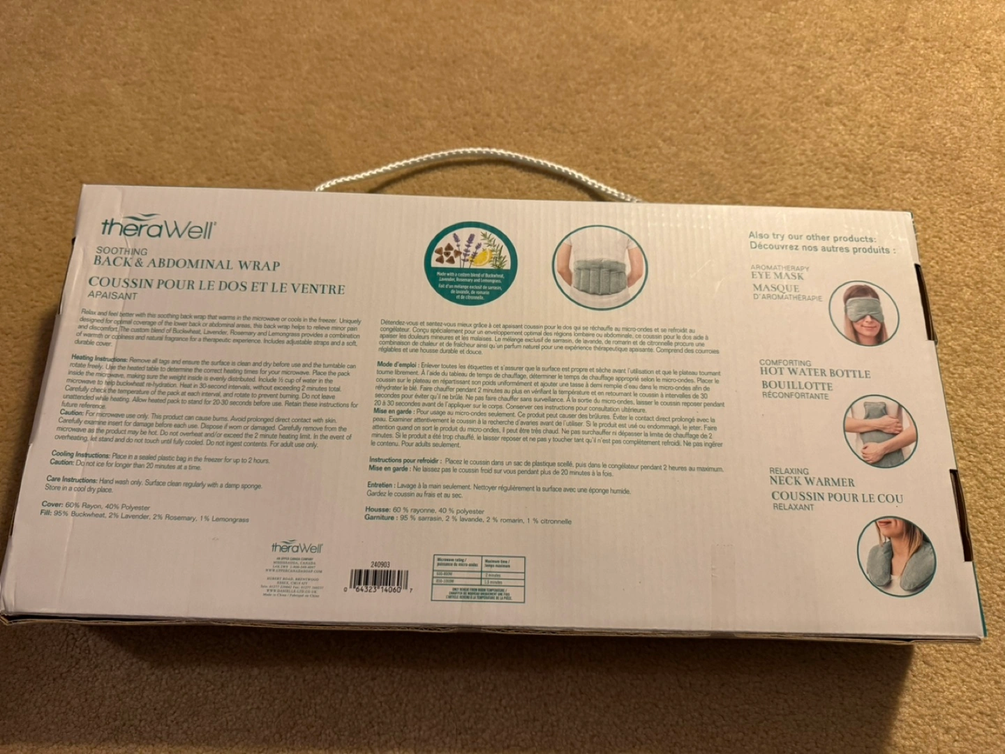 Helps to soothe lower back or abdominal pain and discomfort. Made with a custom blend of Buckwheat, Lavender, Rosemary and Lemongrass. 17.5" L x 8.25" W.