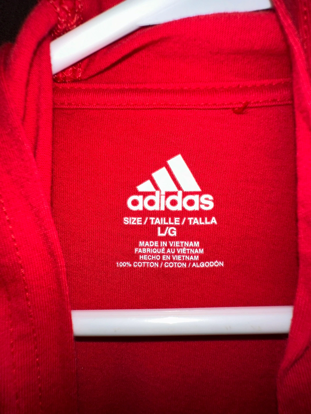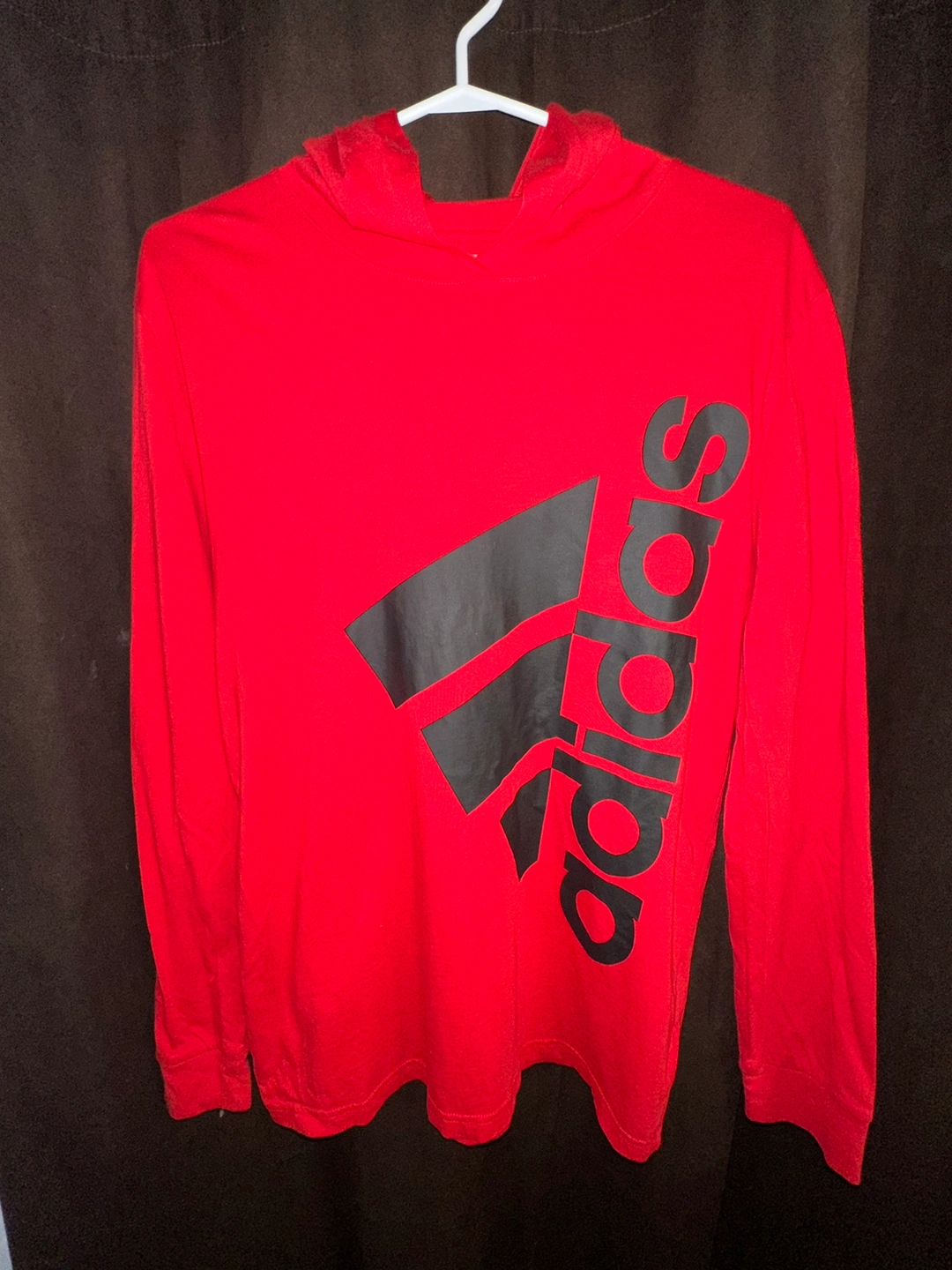 Brand: ADIDAS Condition: New (Never been worn) Size: Large. Colour: Red Material: 100% Cotton details: Breathable, Lightweight material. Item: Red Adidas hoodie with black logo.