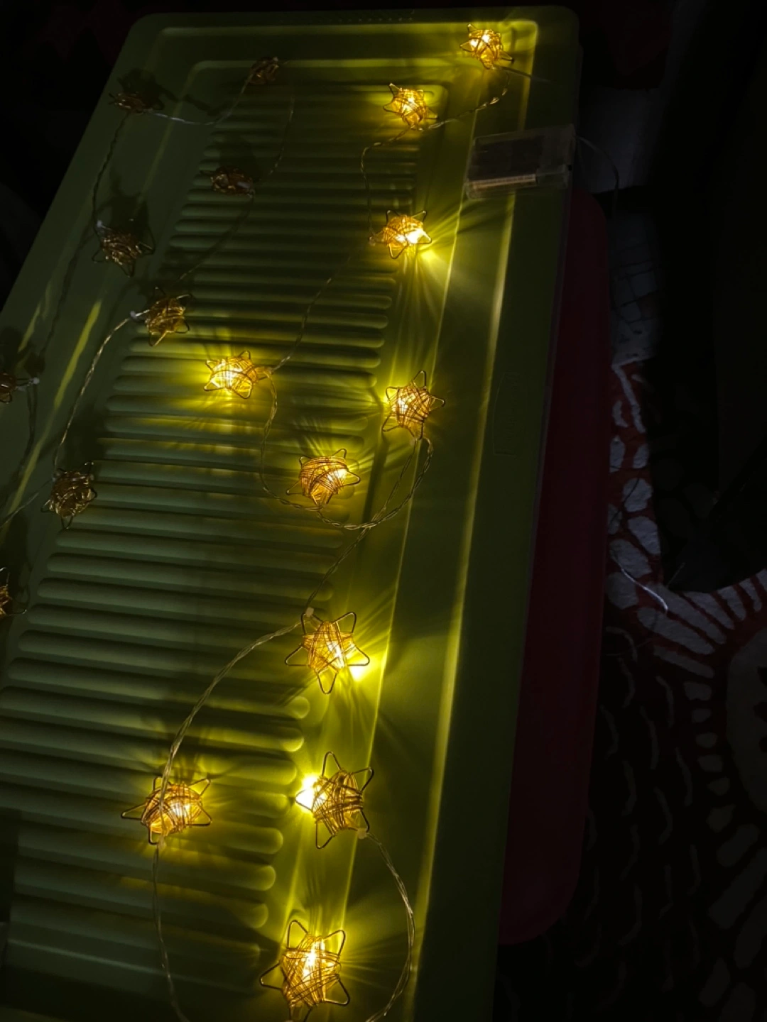 Two strands of fairy star lights in great working condition takes 3- AA batteries has an on off switch perfect twinkle lights for a bedroom or around the house. Purchased from Cole’s bookstore. PICK UP PICKERING WHITES rd & STROUDS lane