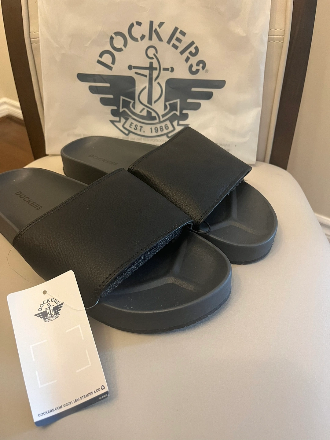 brand new size with tags original very comfortable have black in 12 size Slip-on Faux leather upper Durable rubber outsole Double stitch construction Wide band across vamp for secure fit Molded EVA footbed for comfort Product Colour: black